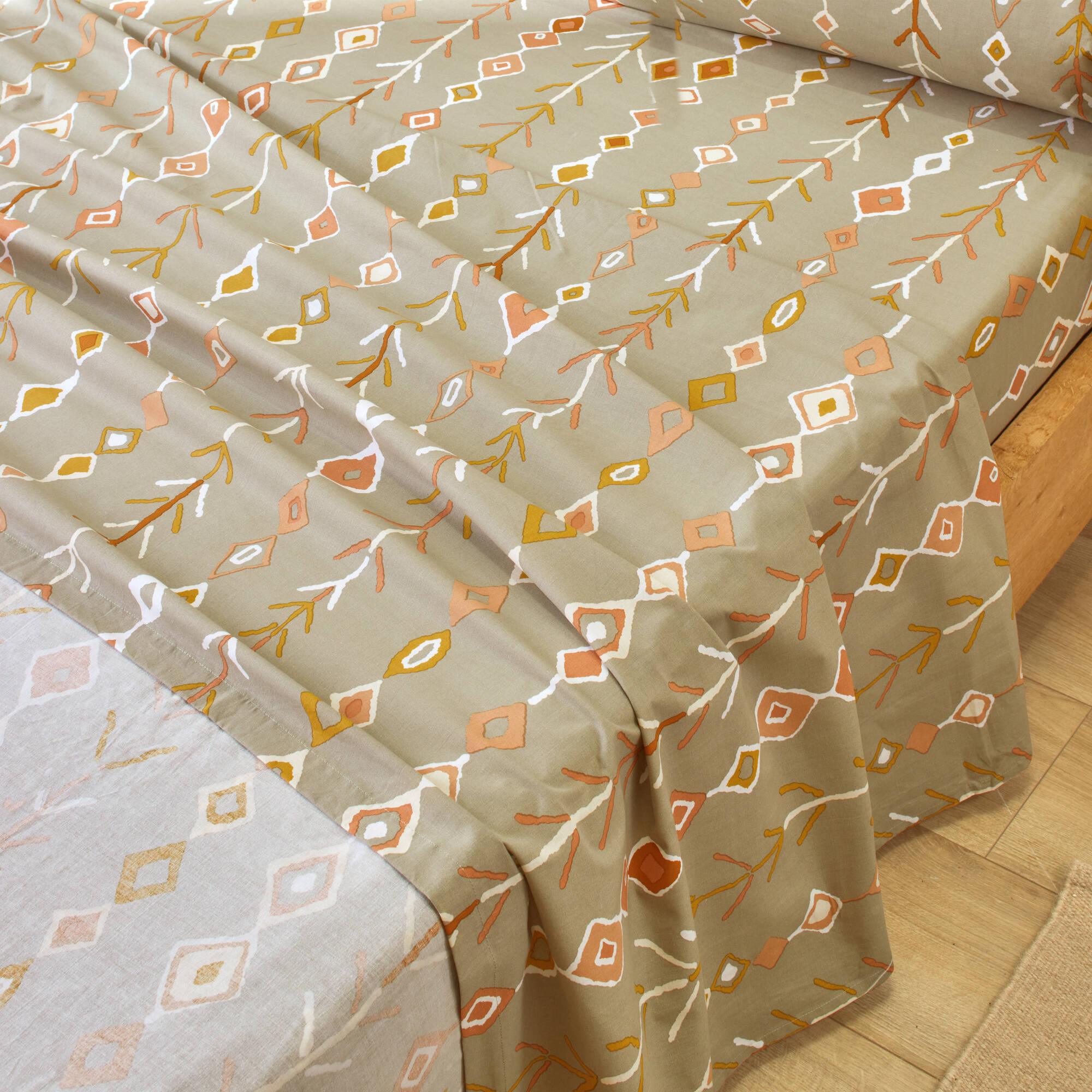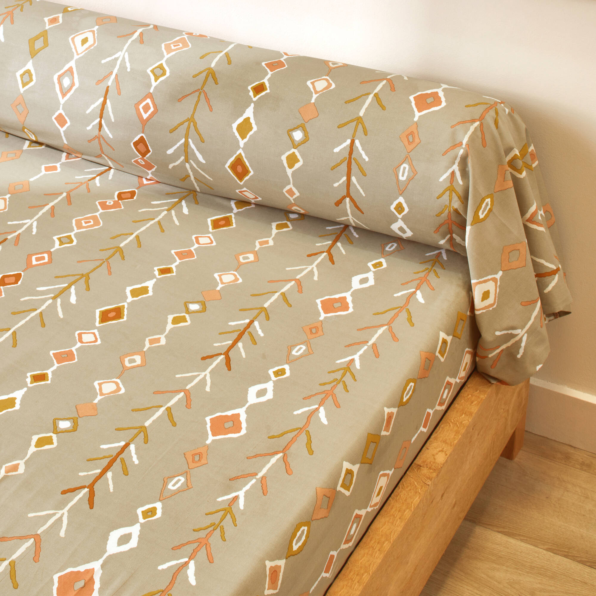 Linge de lit Mahe en coton imprimé ethnique  (beige)