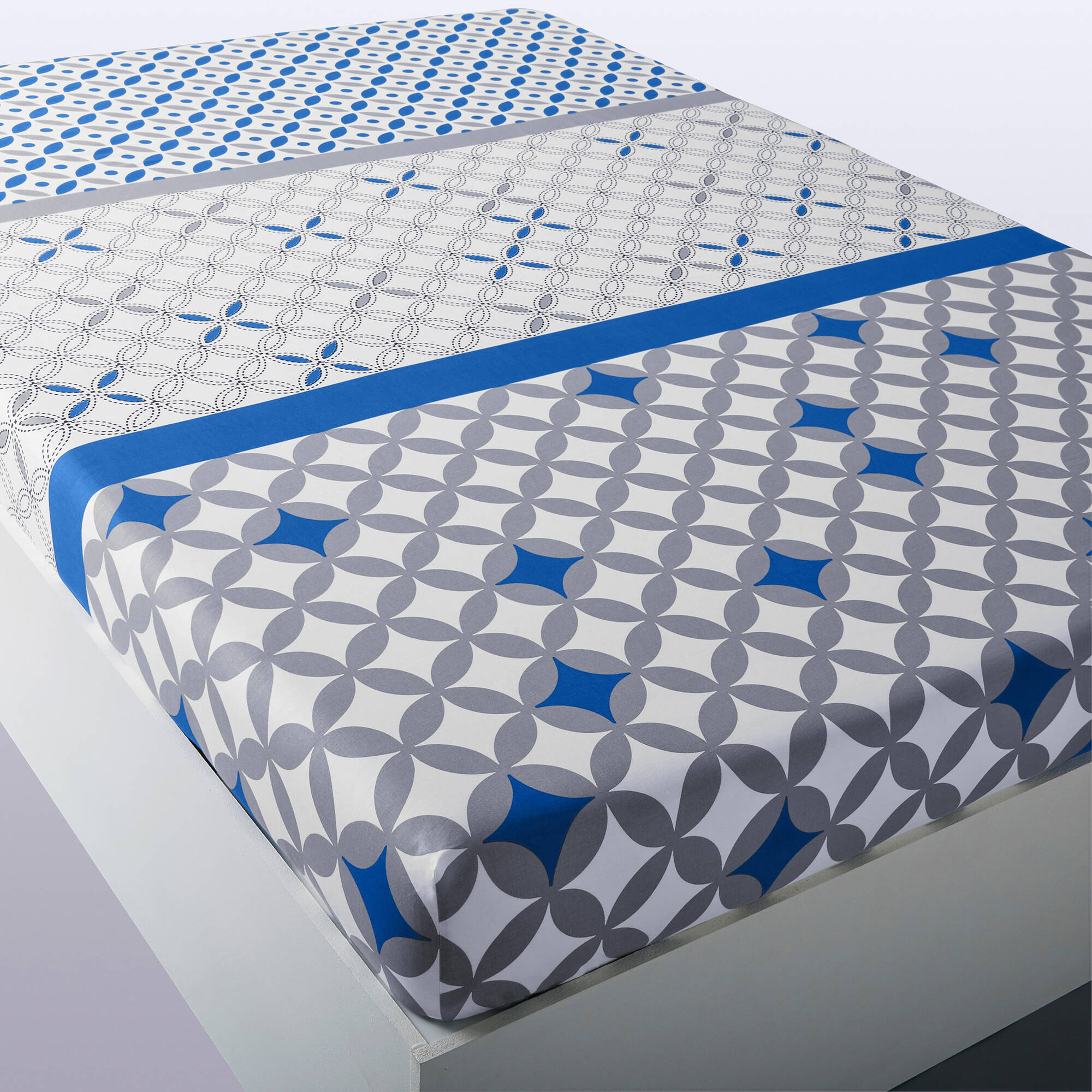 Linge de lit Marlow coton, imprimé géométrique (gris / bleu)