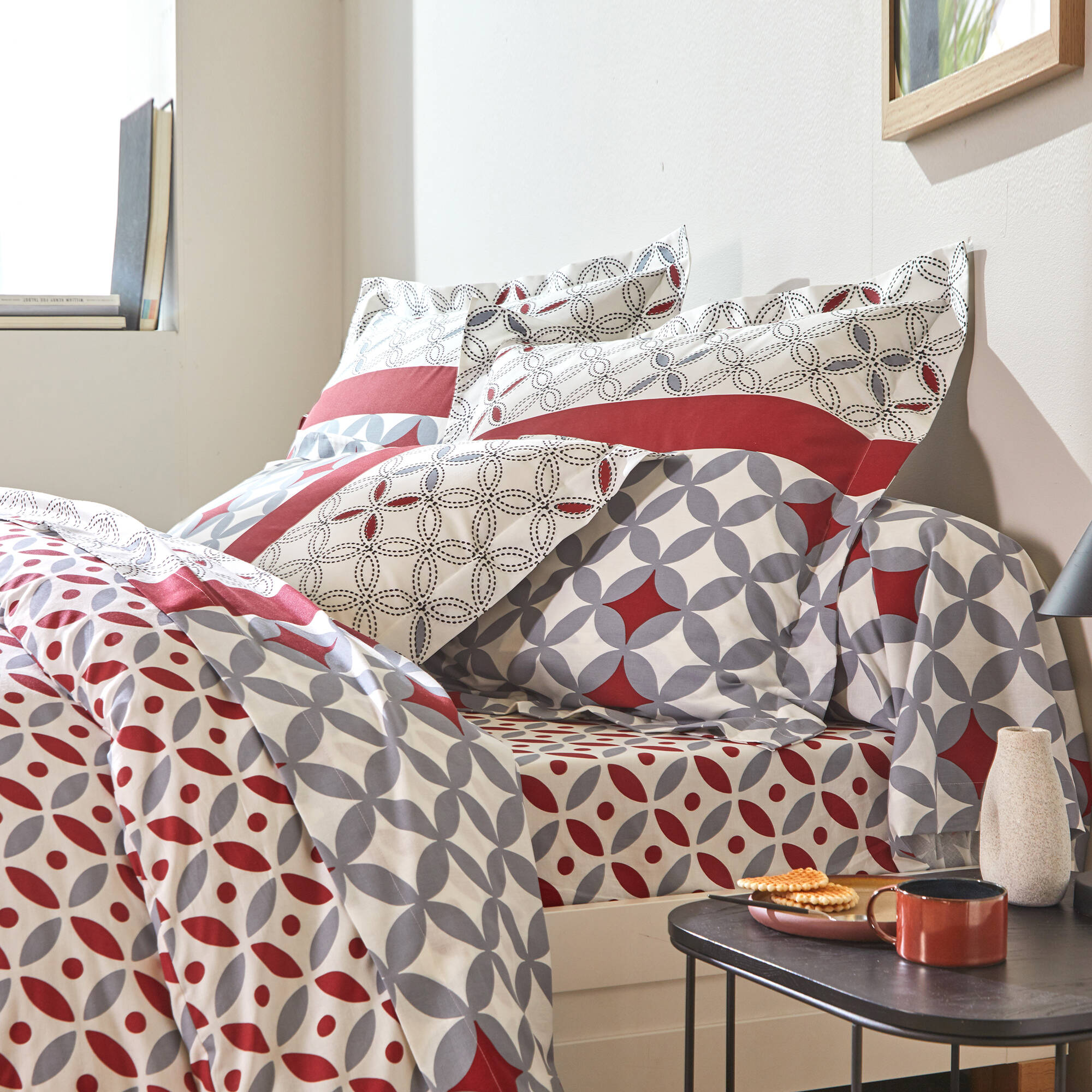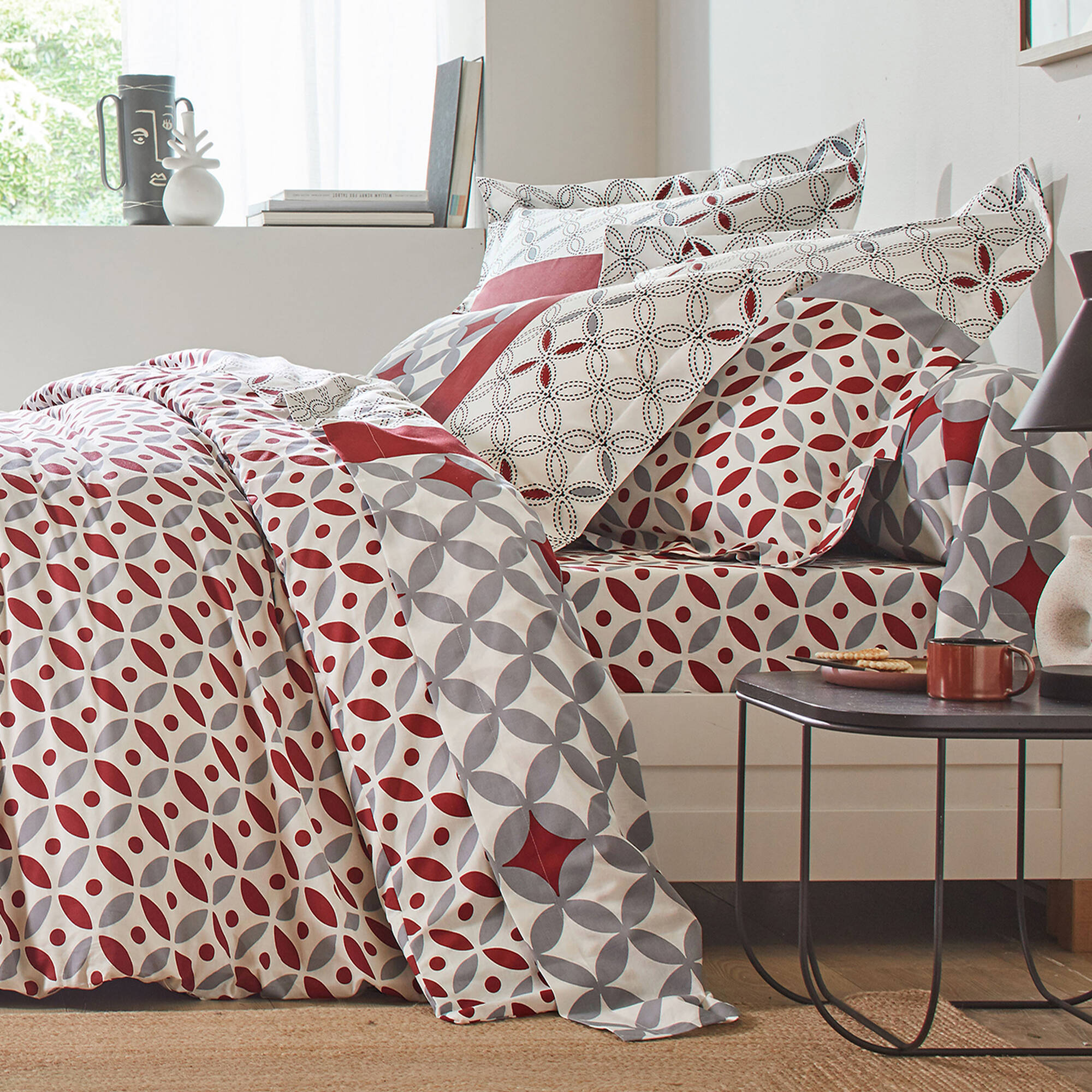 Linge de lit Marlow coton, imprimé géométrique (gris / rouge)