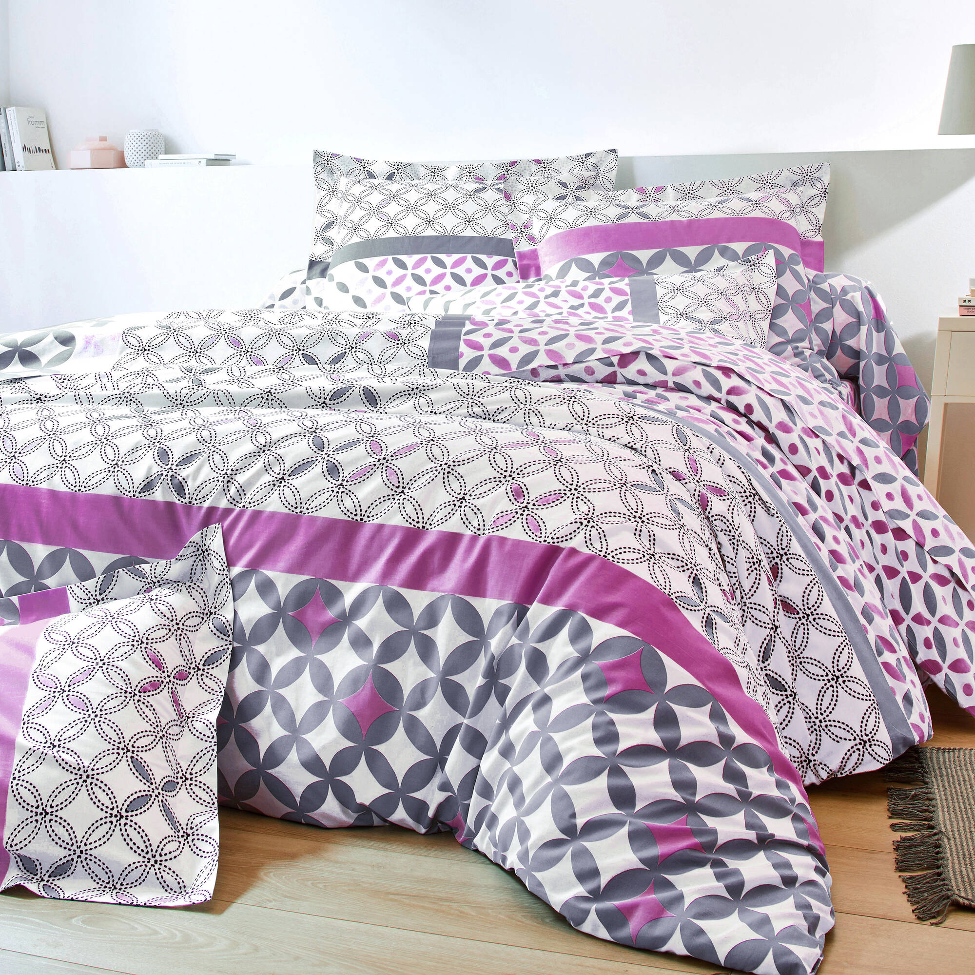 Linge de lit Marlow en coton motifs géométriques (gris / violet)