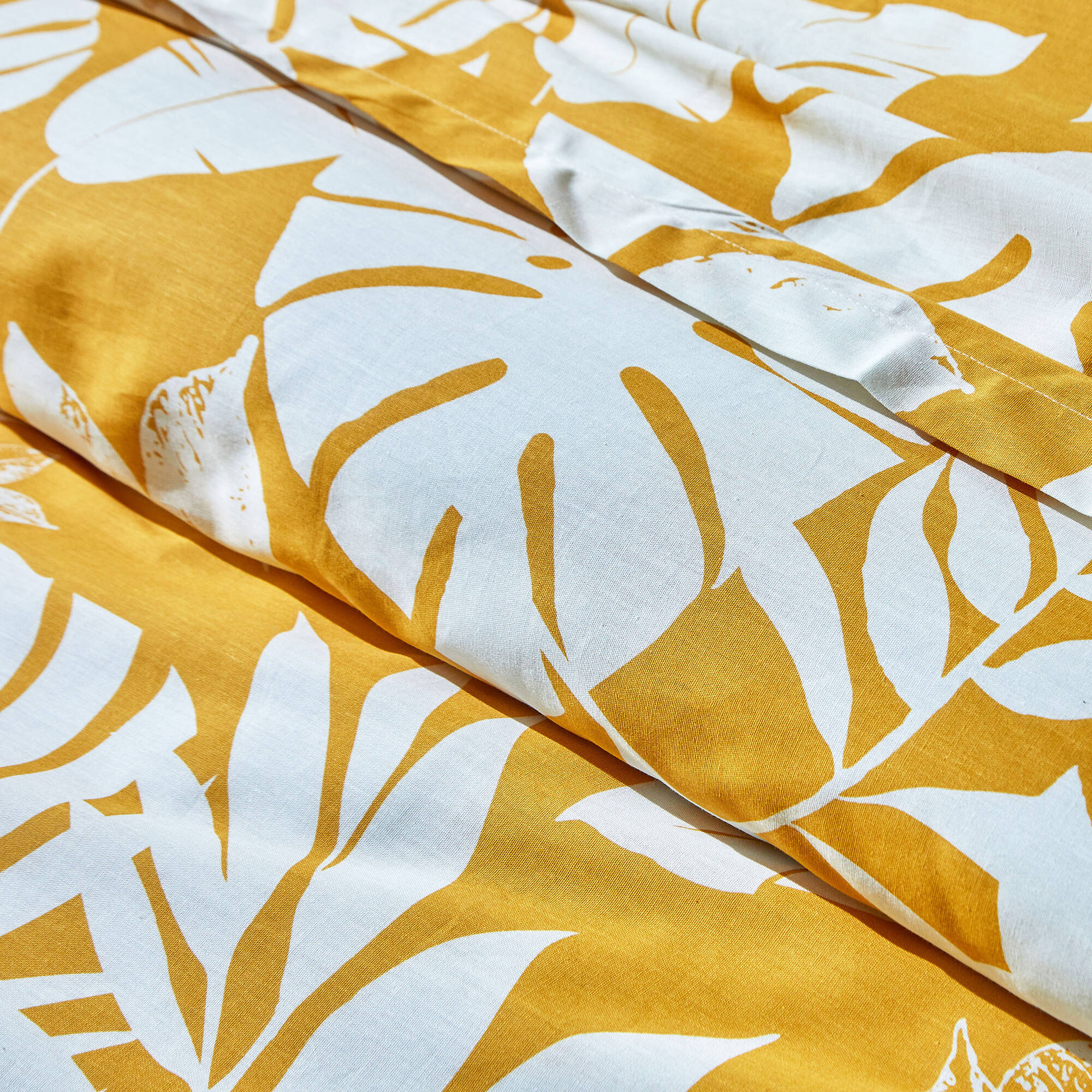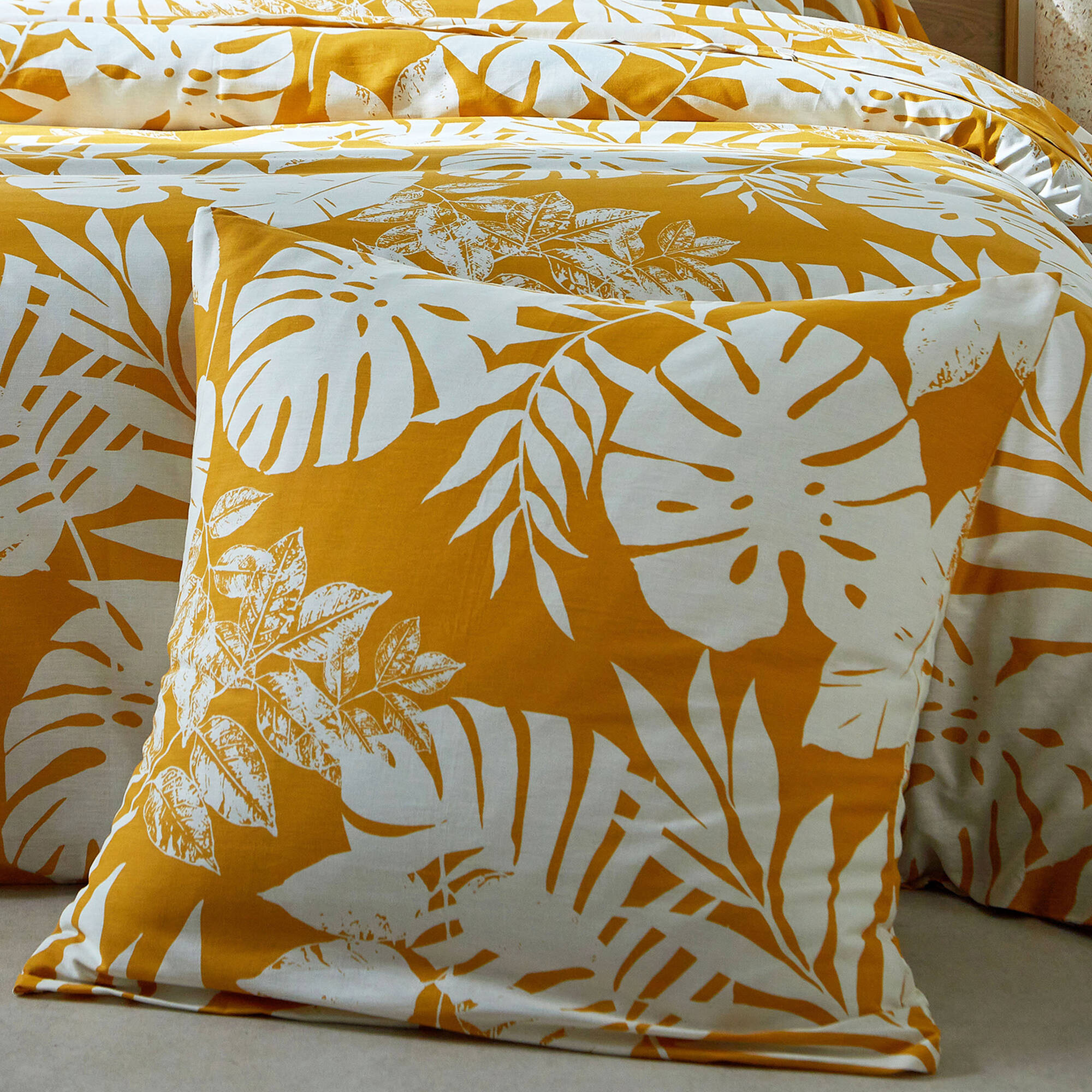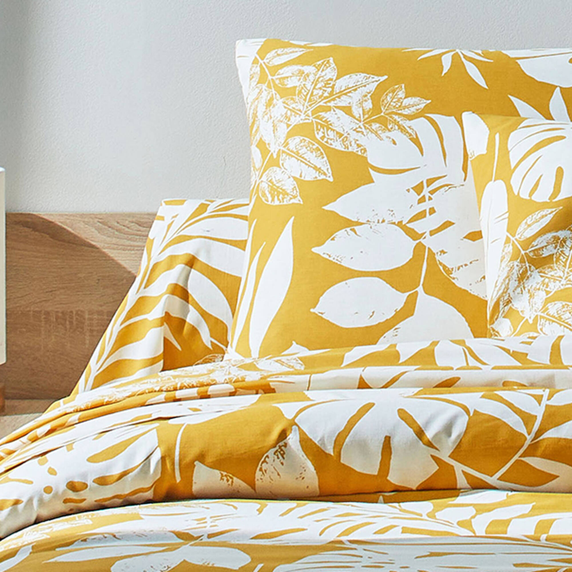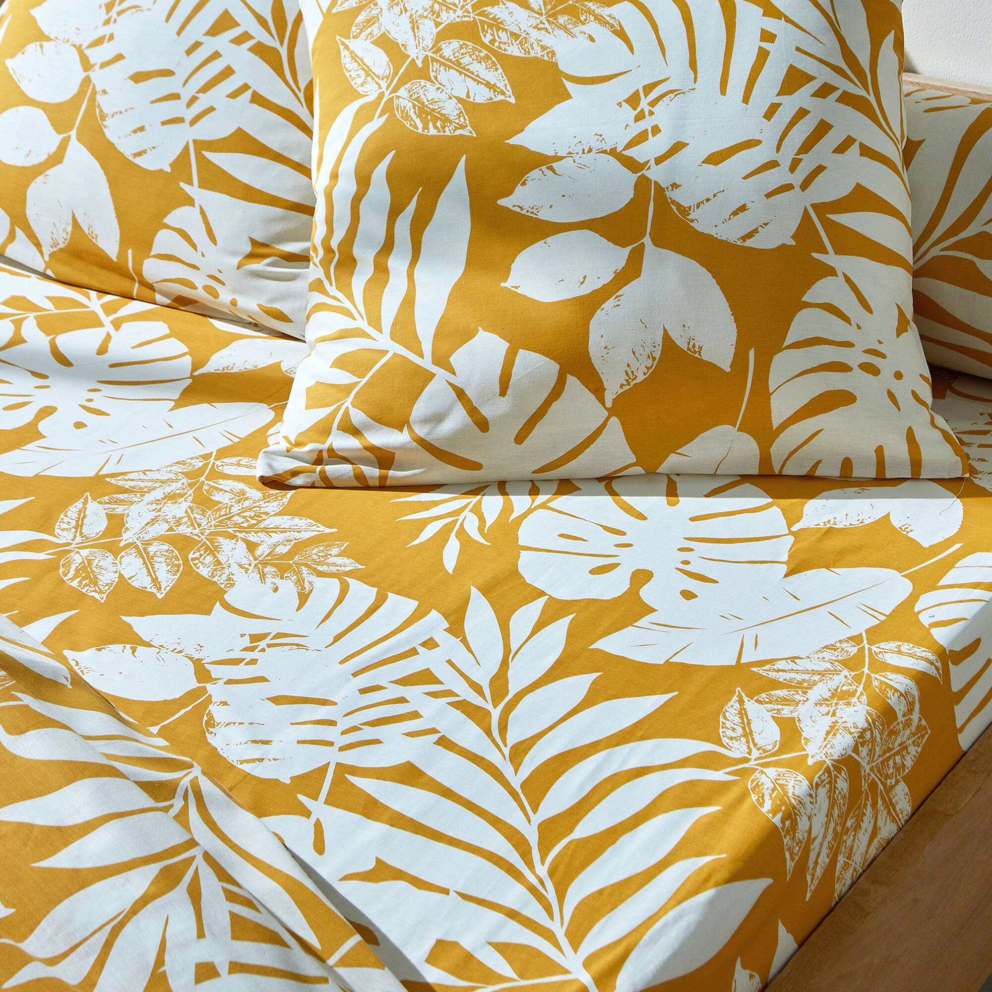 Linge de lit Paddy imprimé feuillage, coton (ocre)