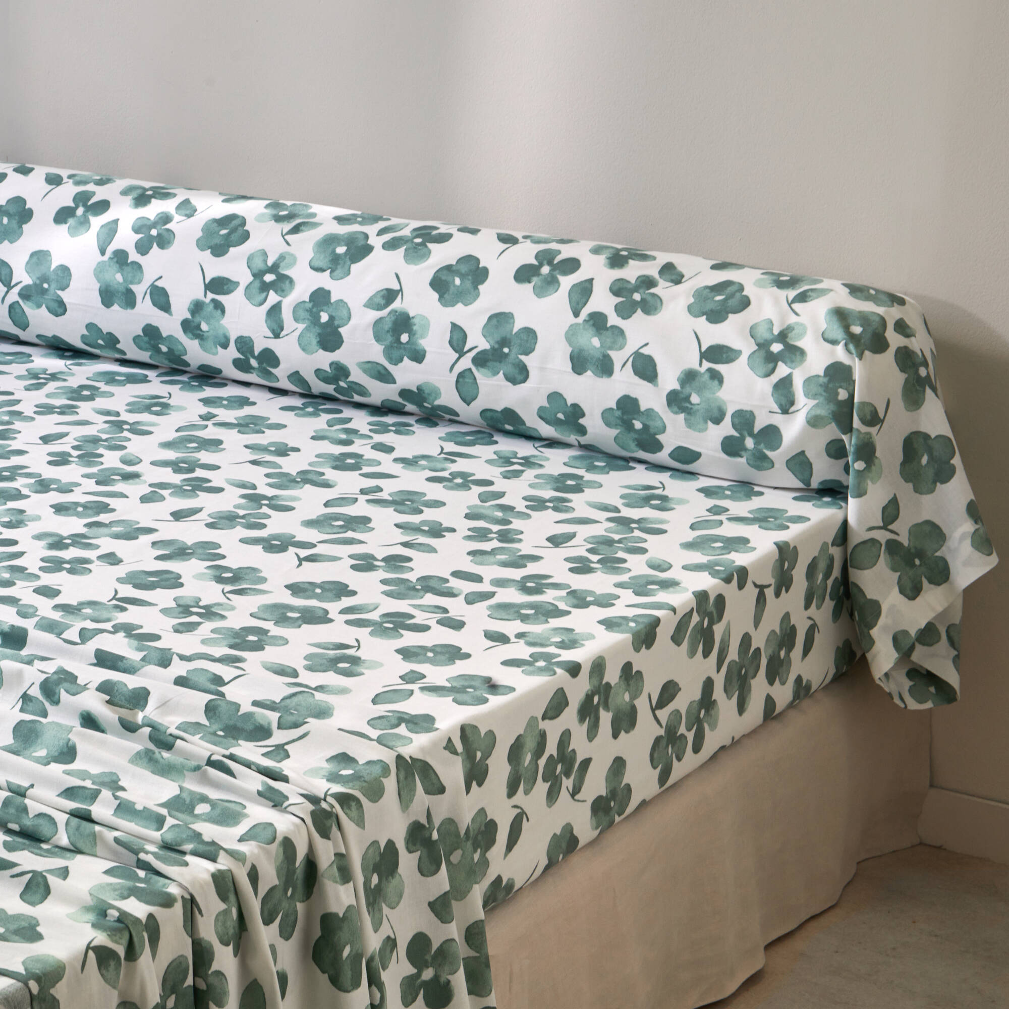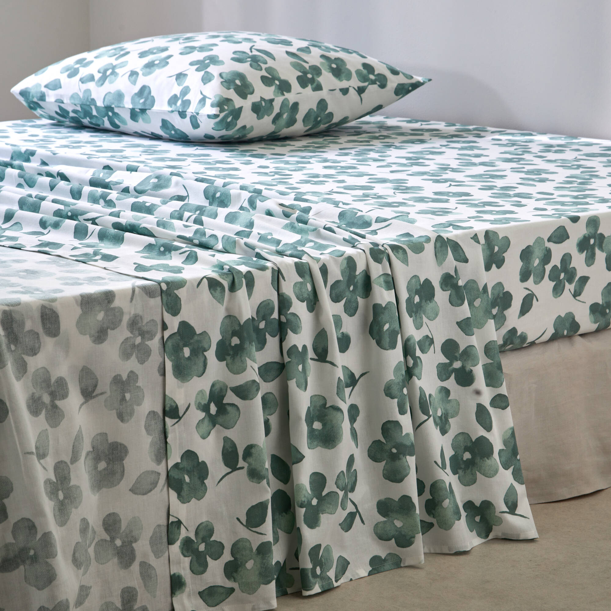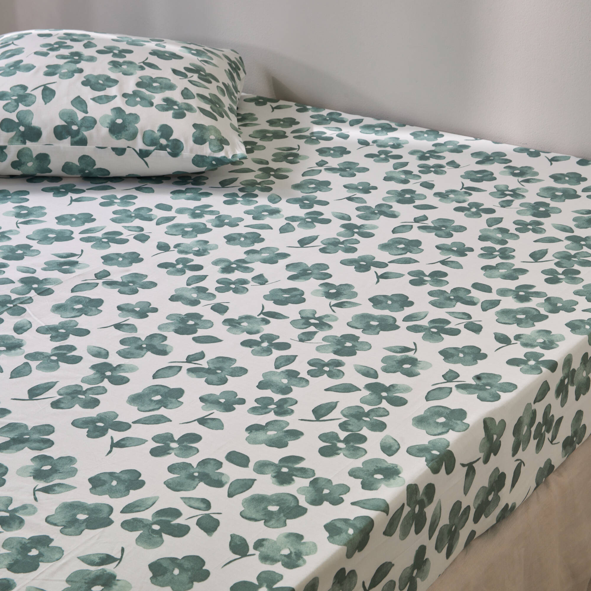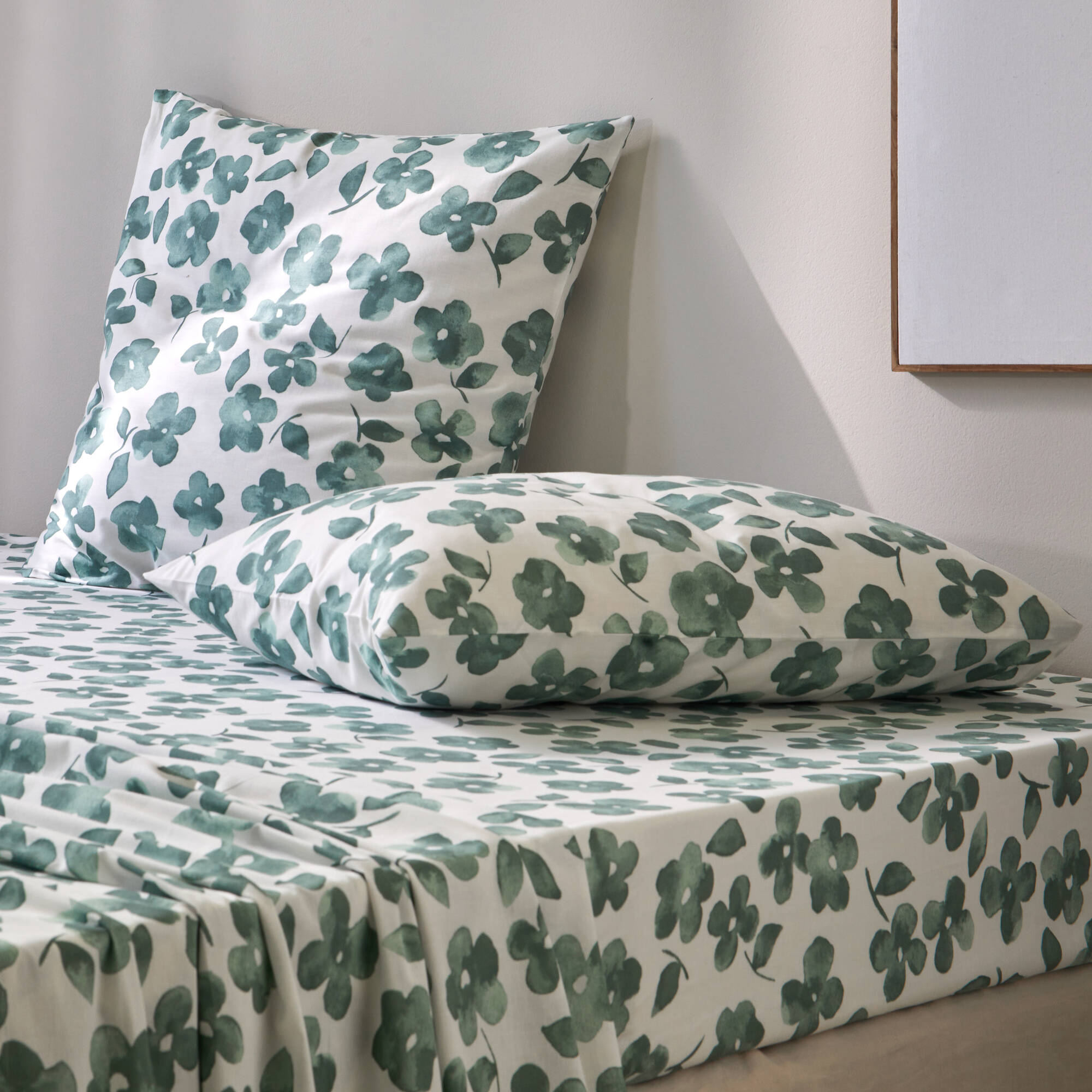 Linge de lit Petunia en coton imprimé (vert amande)