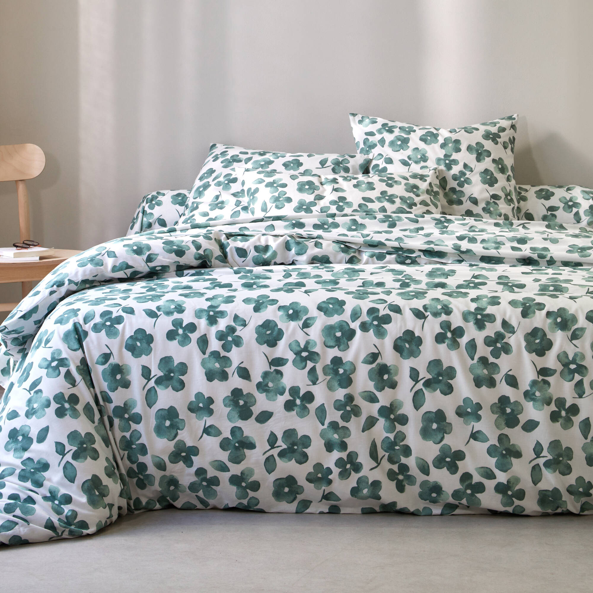 Linge de lit Petunia en coton imprimé (vert amande)