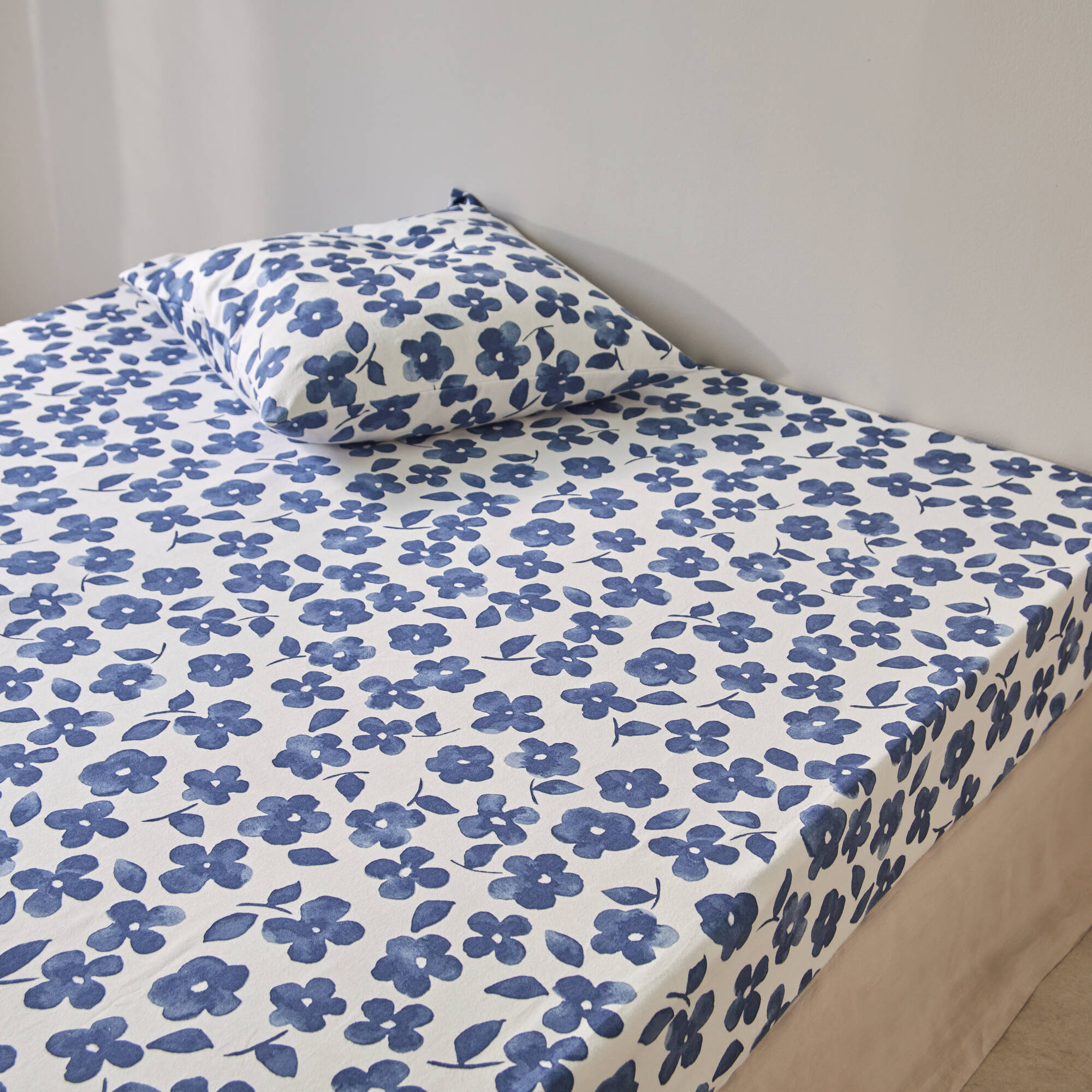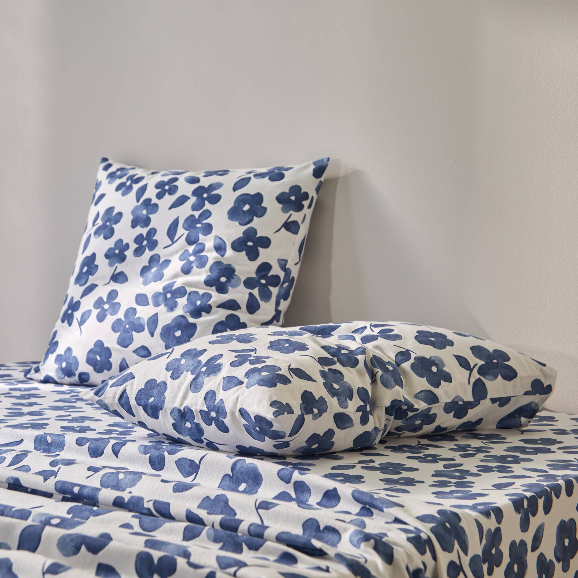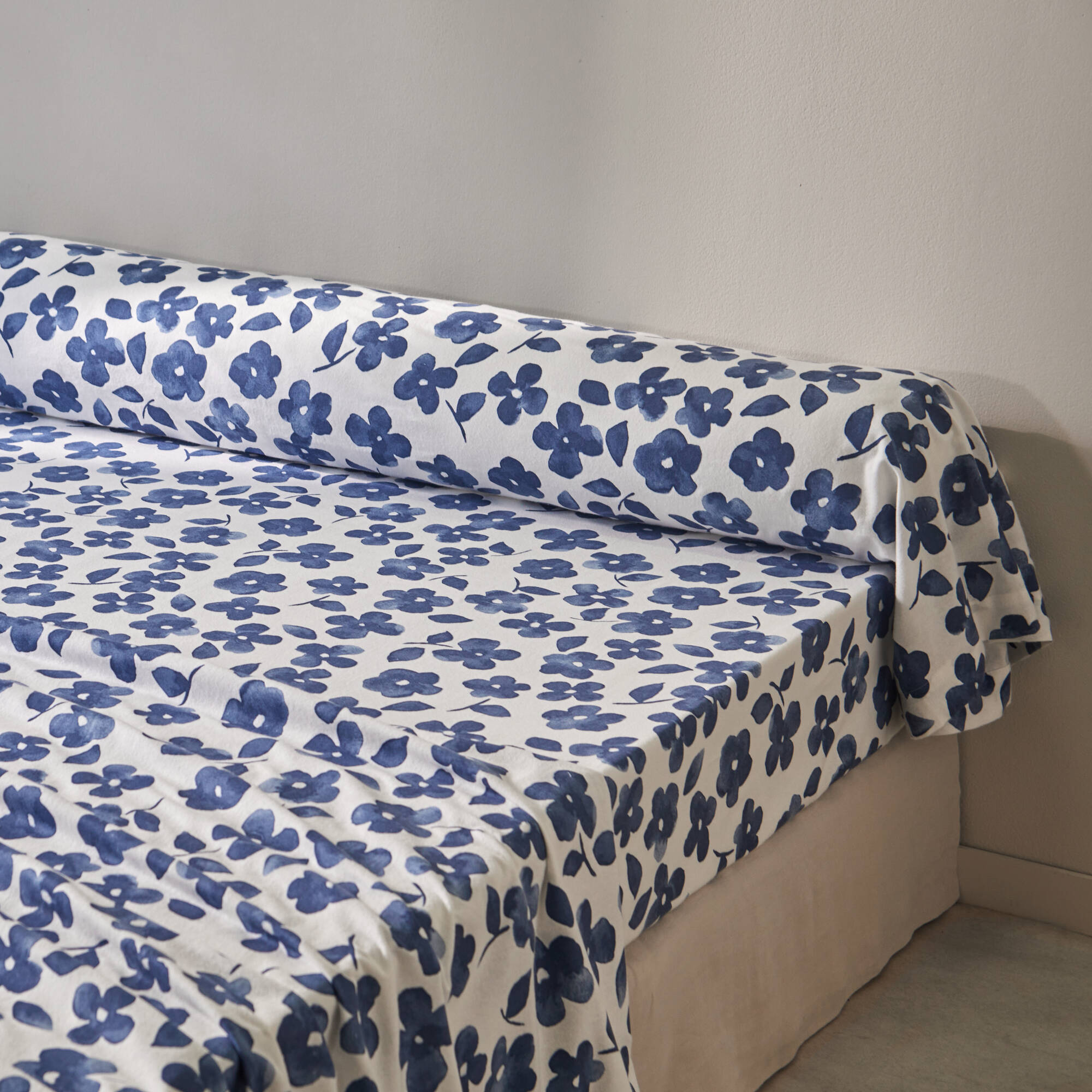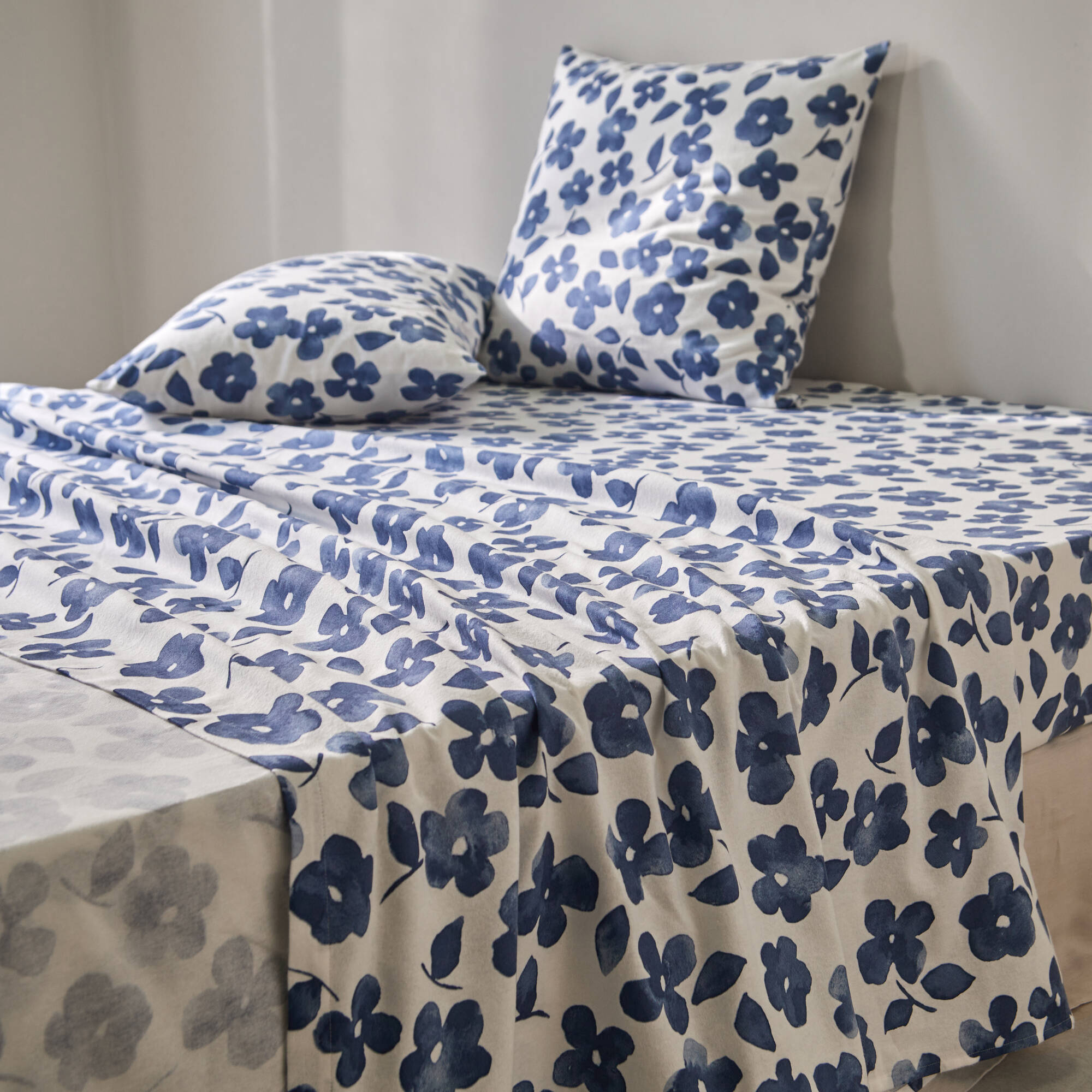 Linge de lit Petunia en flanelle imprimée (bleu)