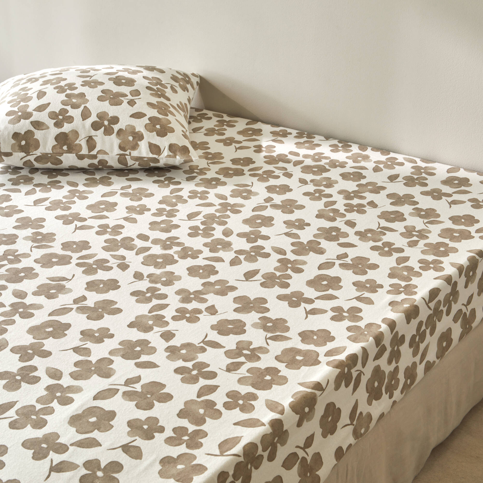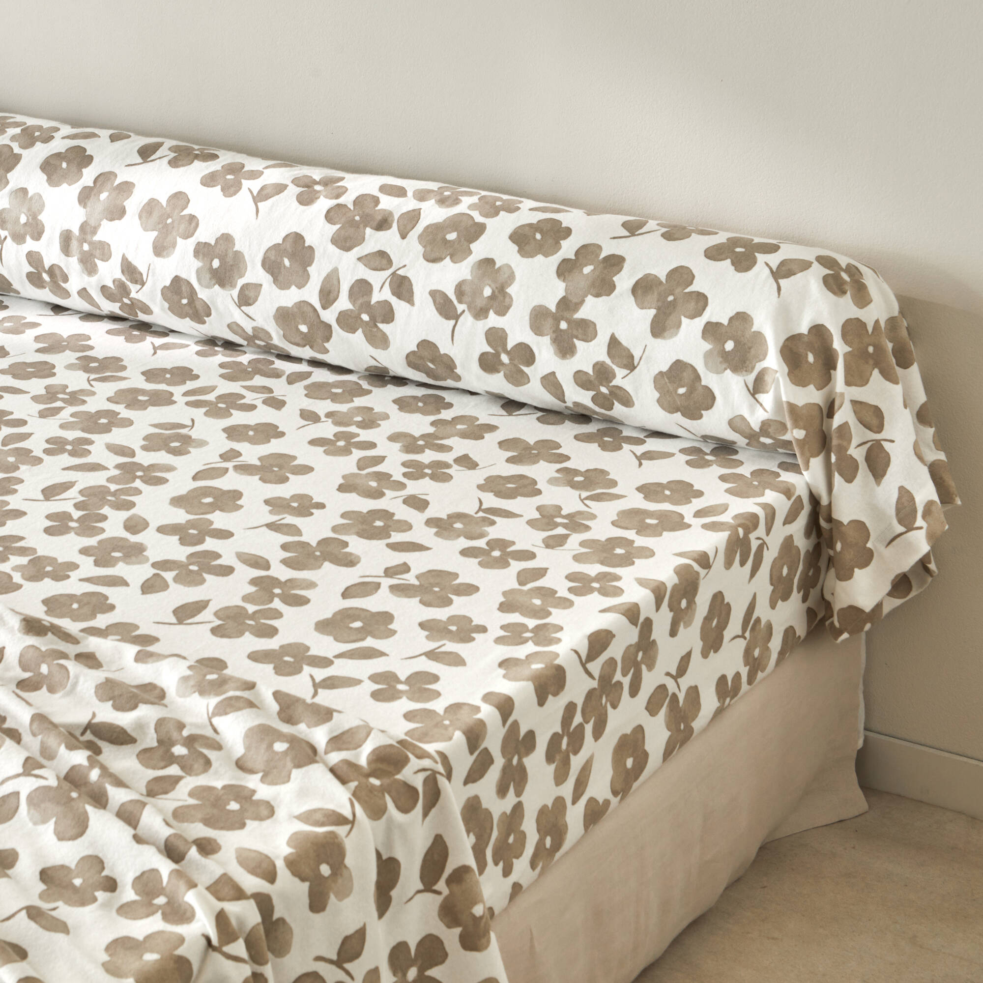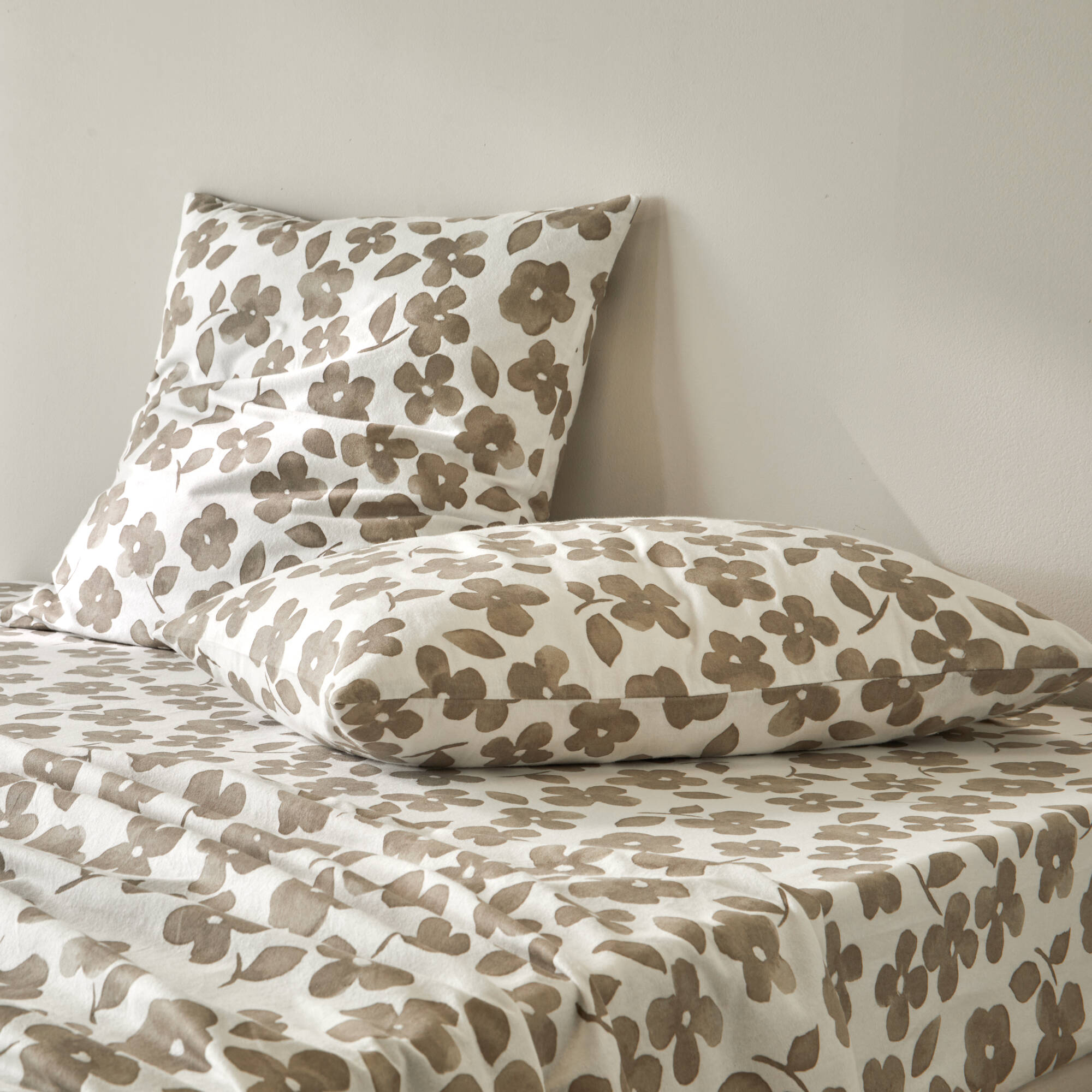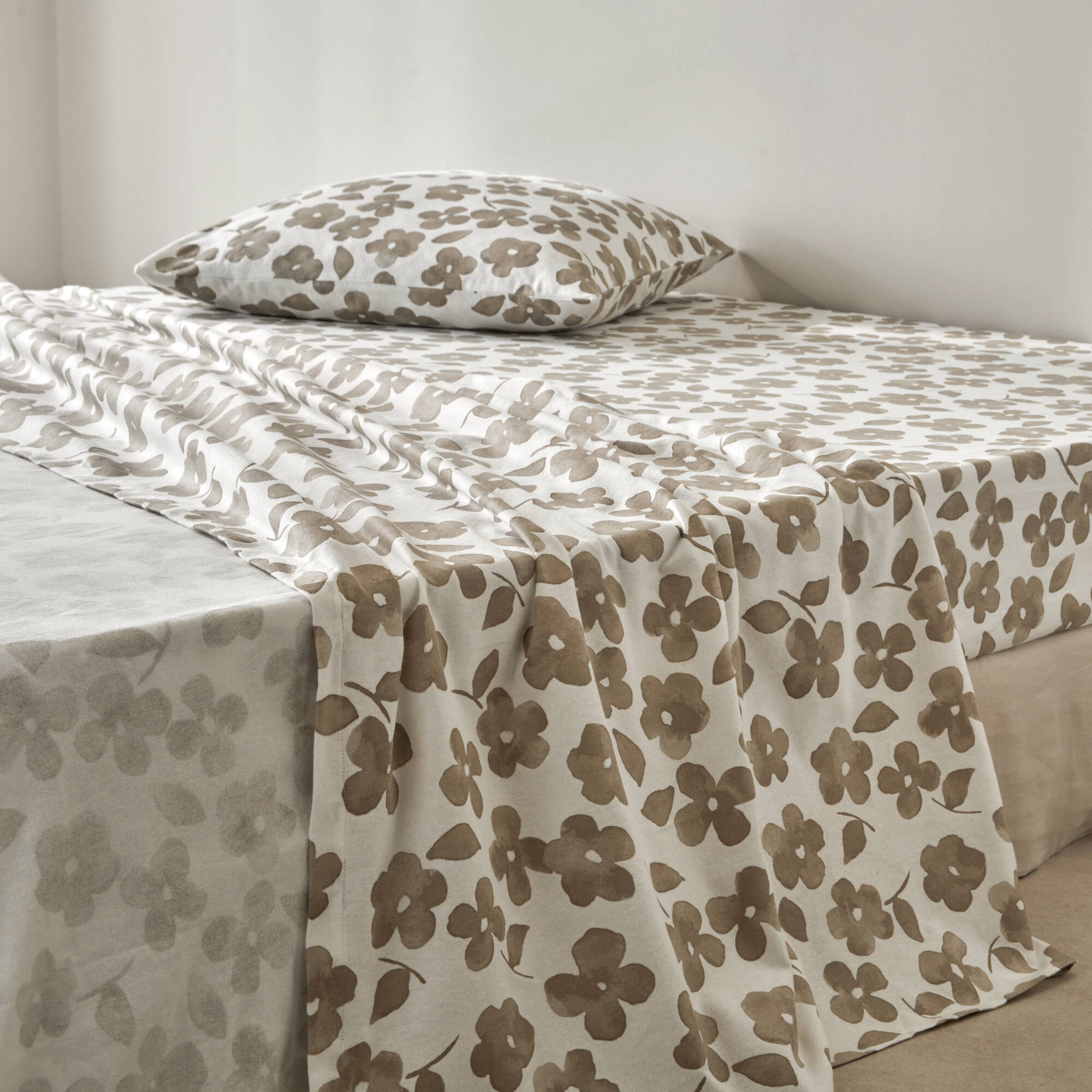 Linge de lit Petunia en flanelle imprimée (grège)