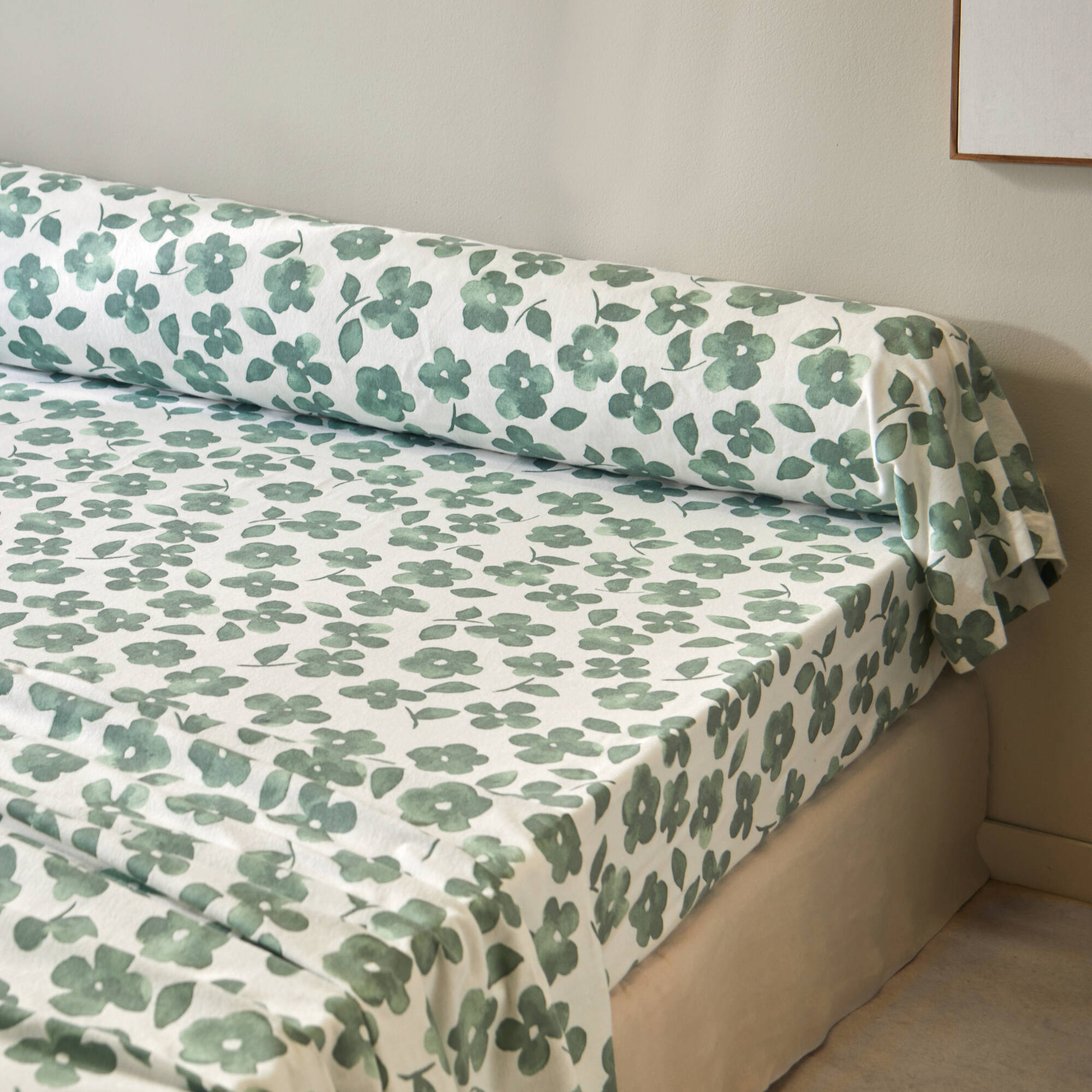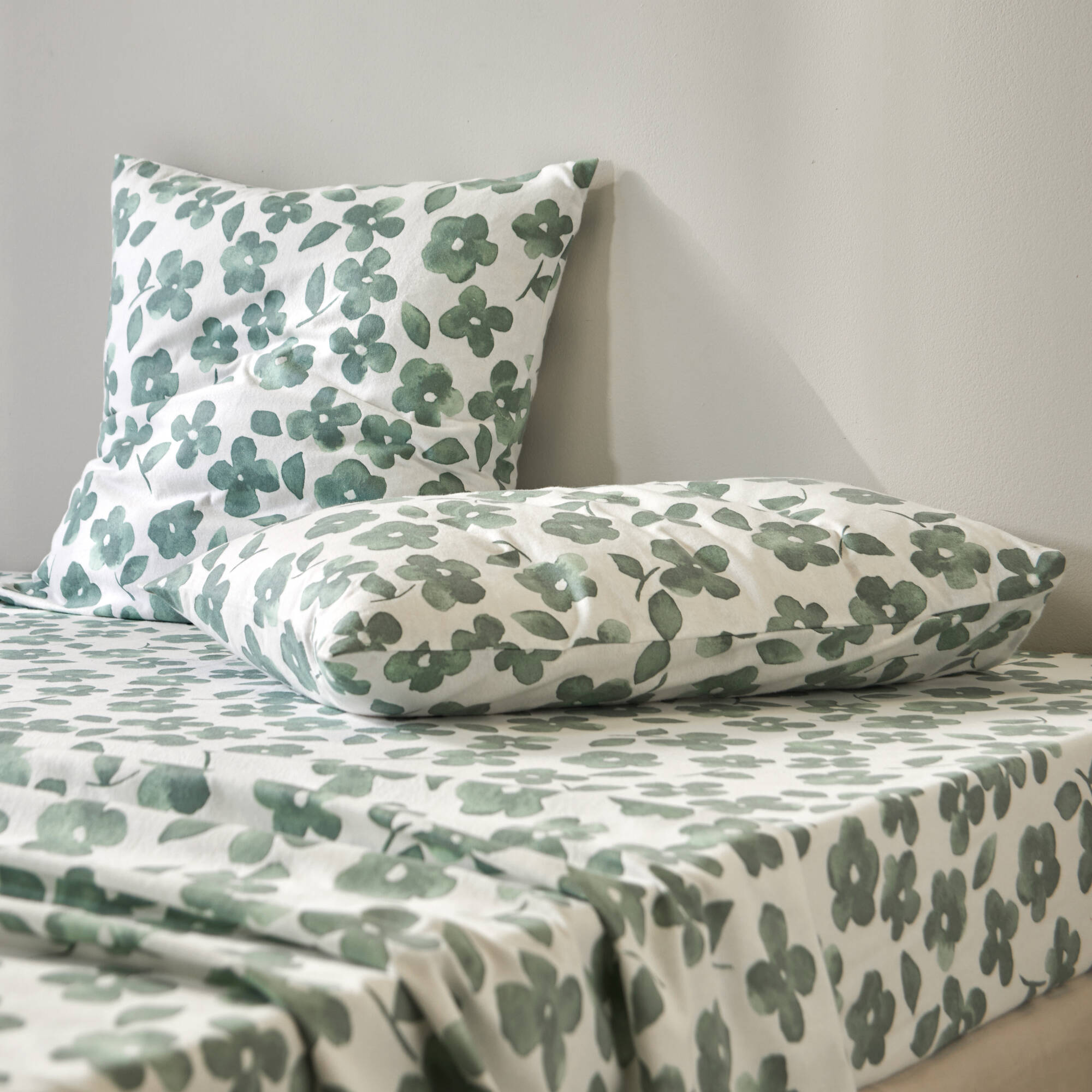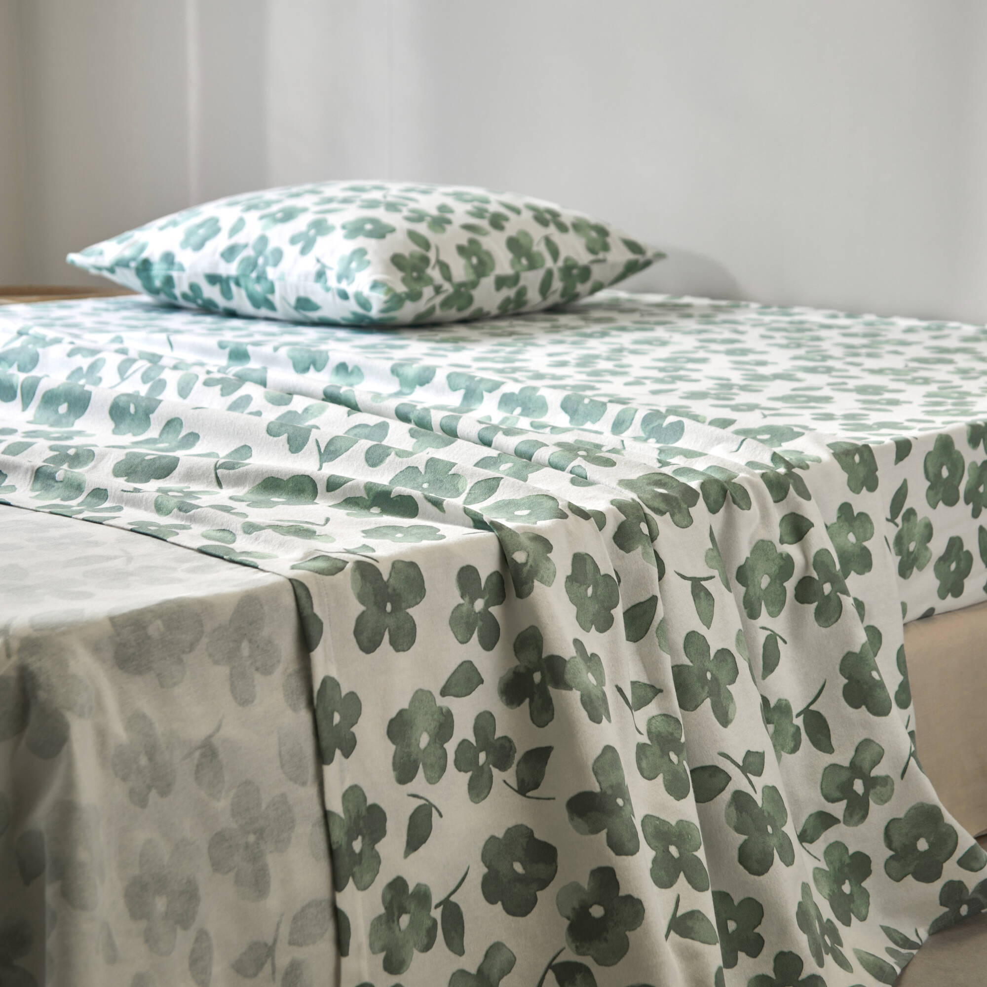 Linge de lit Petunia en flanelle imprimée (vert amande)
