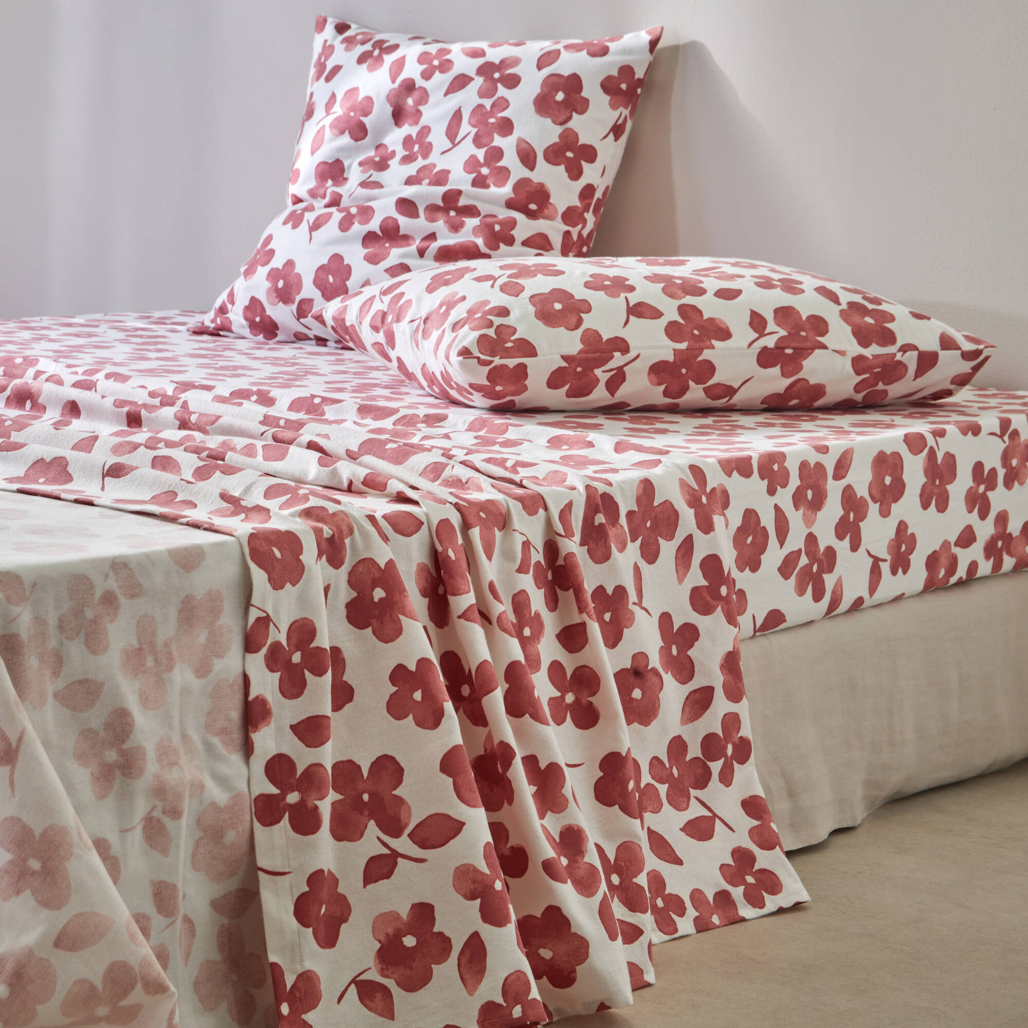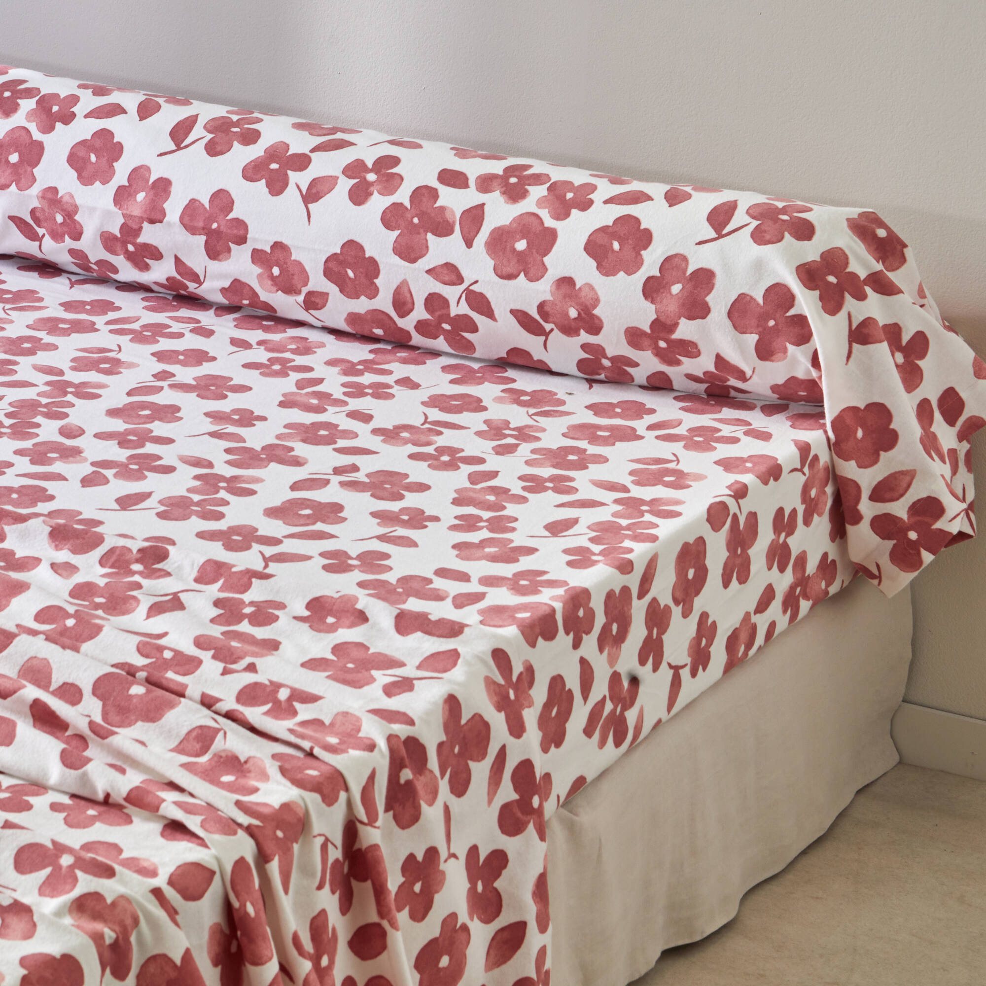 Linge de lit Petunia en flanelle imprimée (bois de rose)
