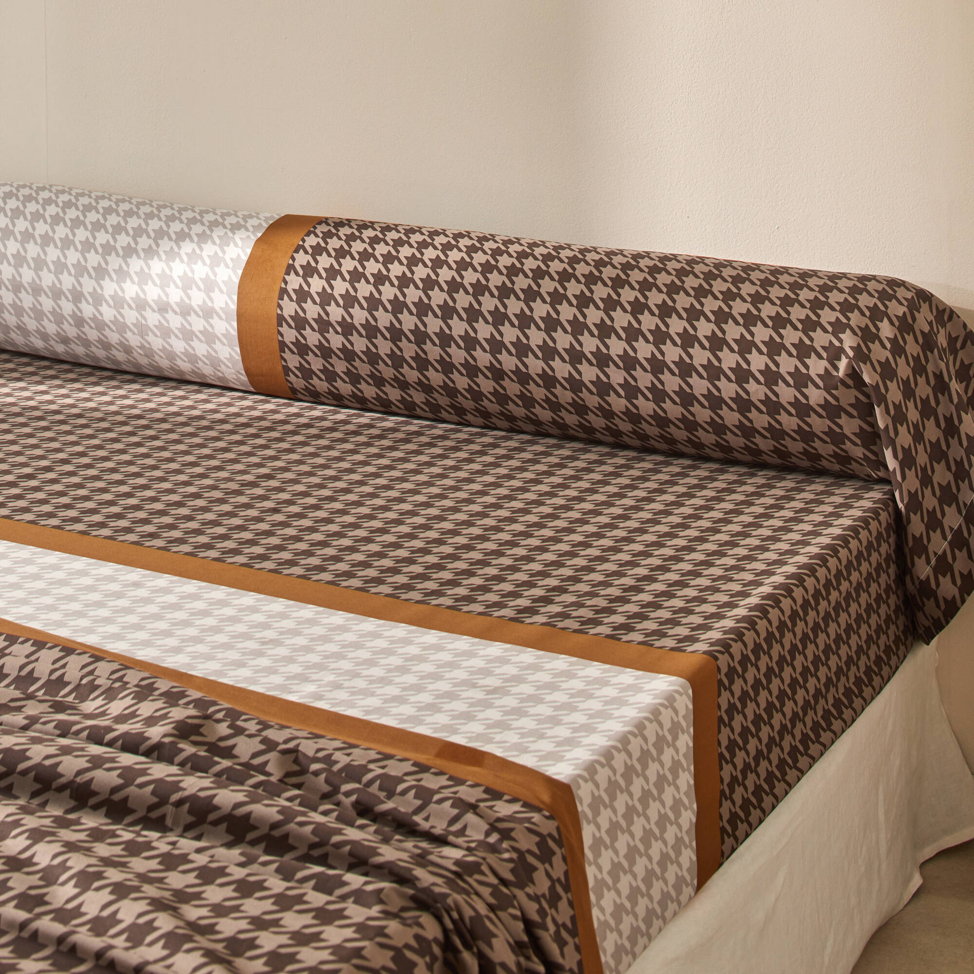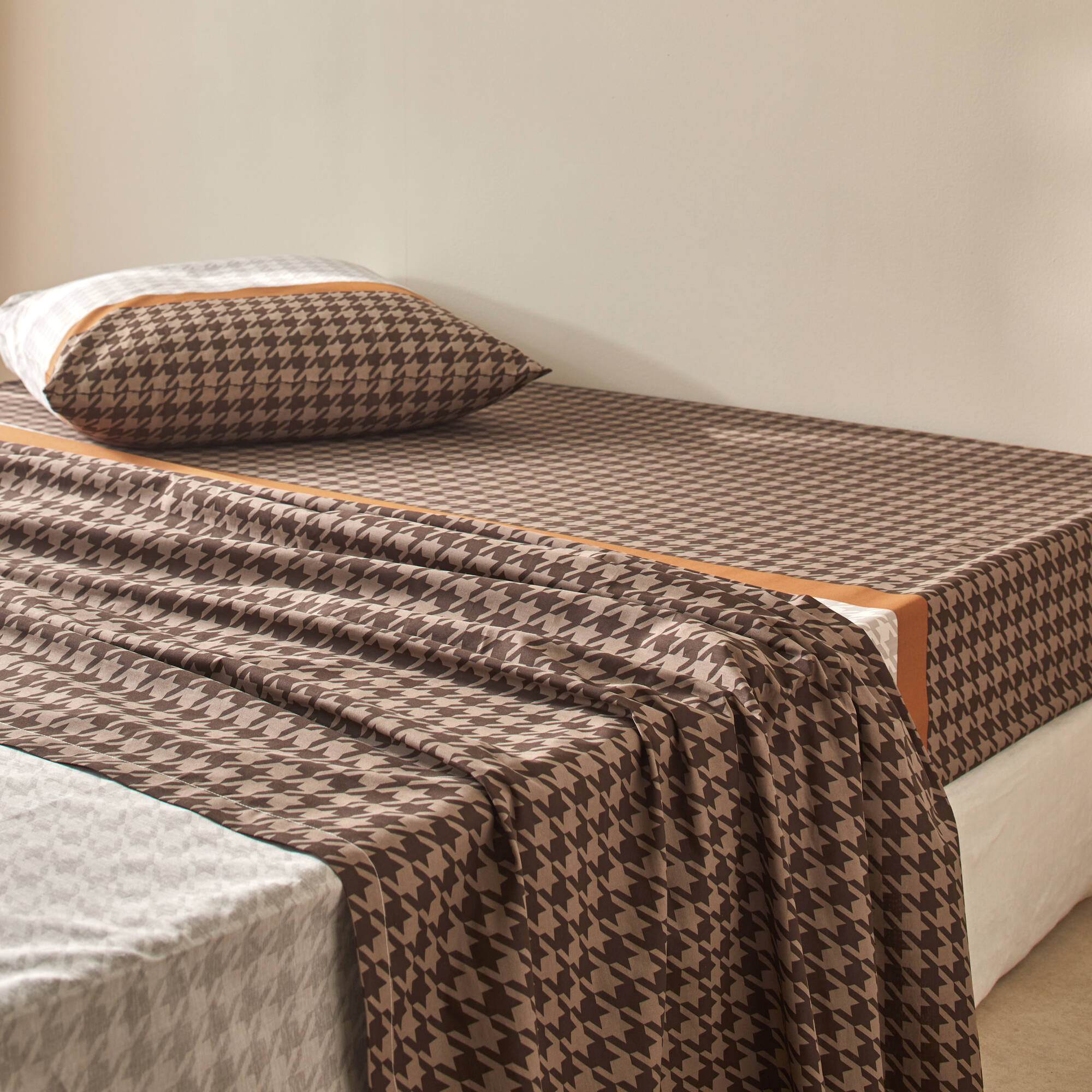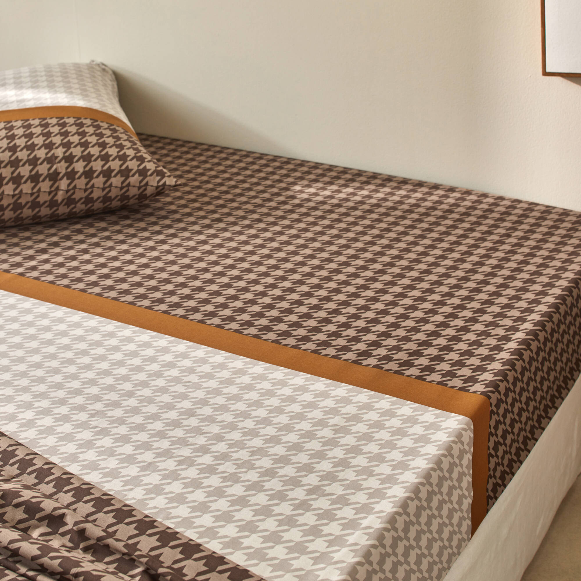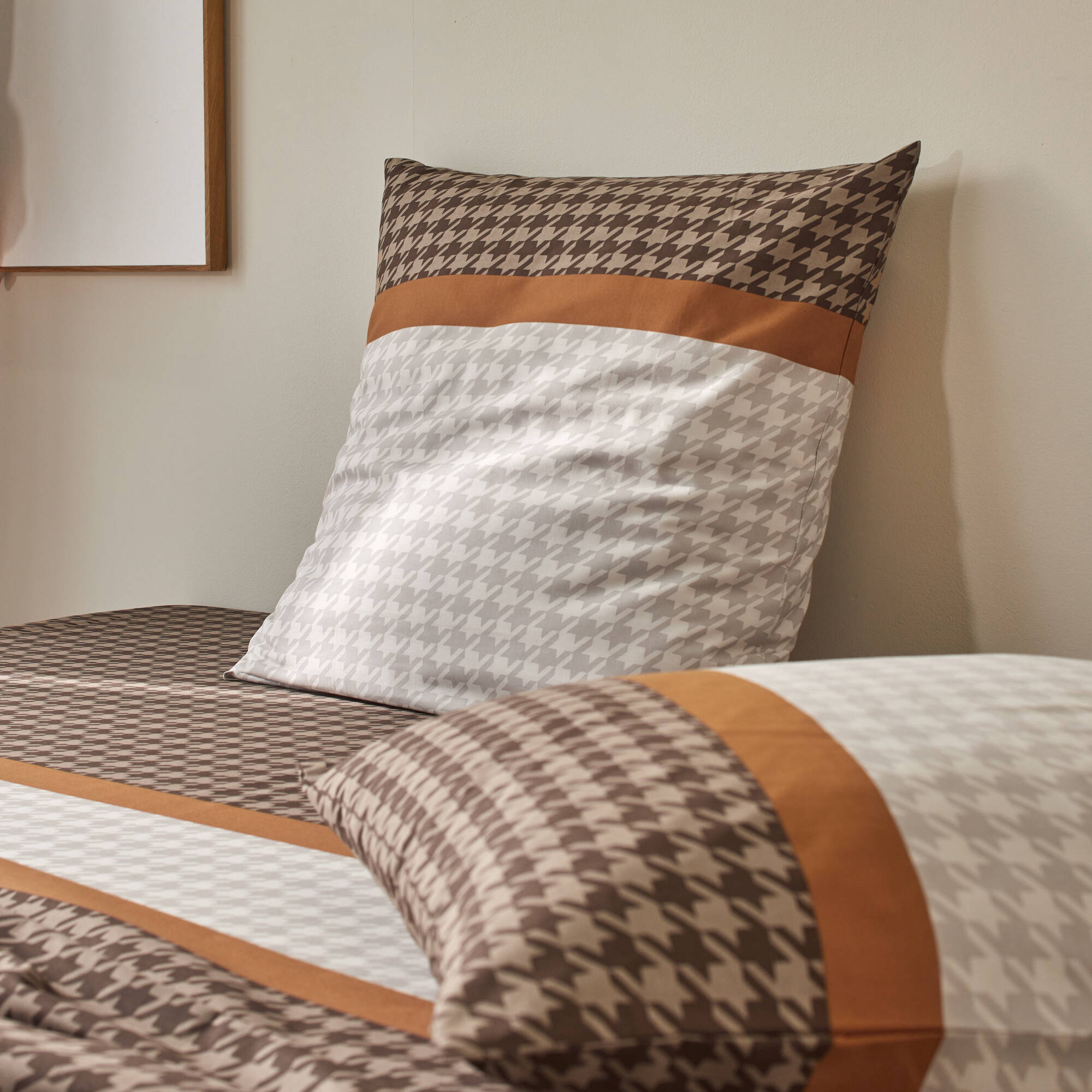 Linge de lit Pierre en coton imprimé pied de poule (beige)