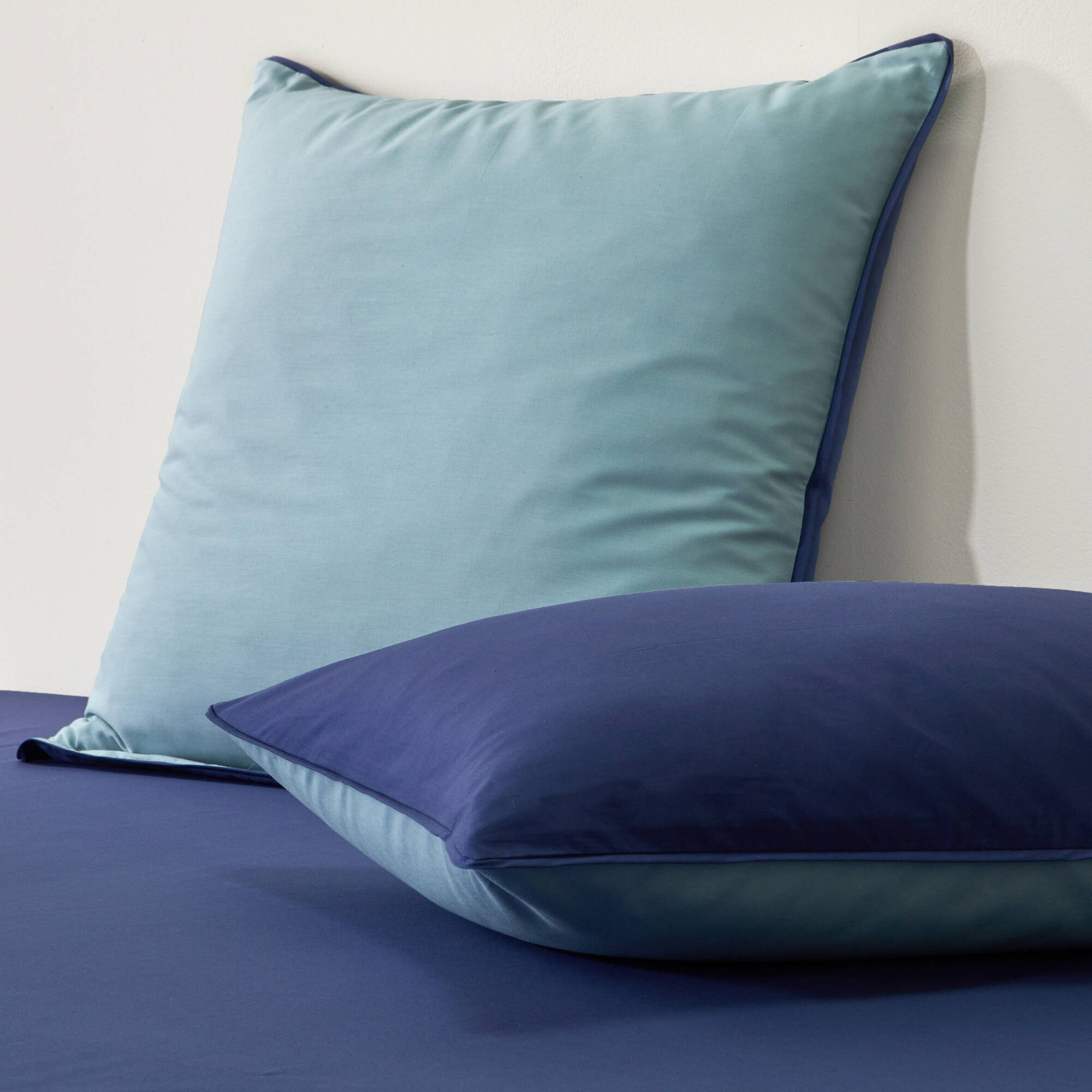 Linge de lit uni bicolore coton (marine / céladon)