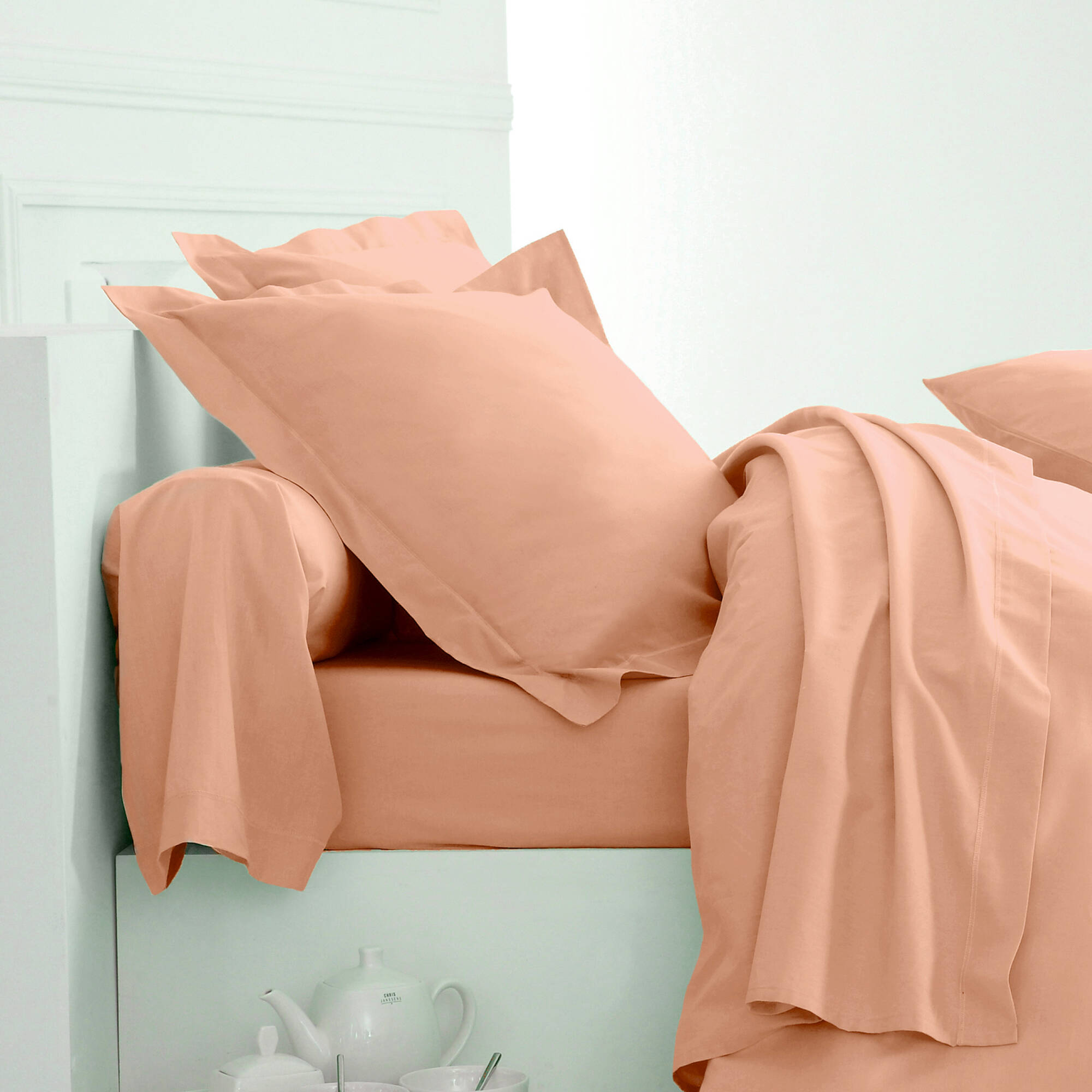 Linge de lit uni coton  (melon)