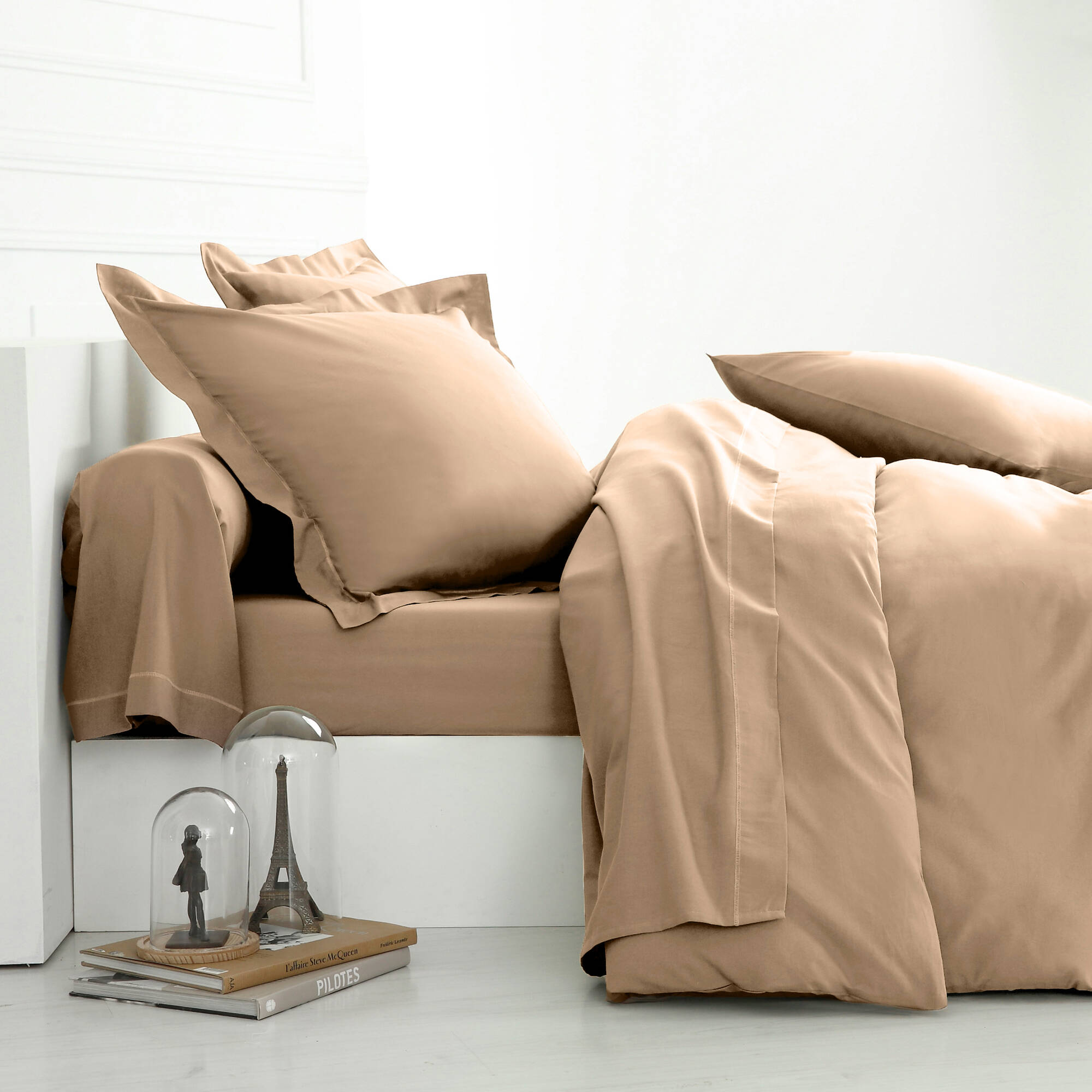 Linge de lit uni coton  (grège)