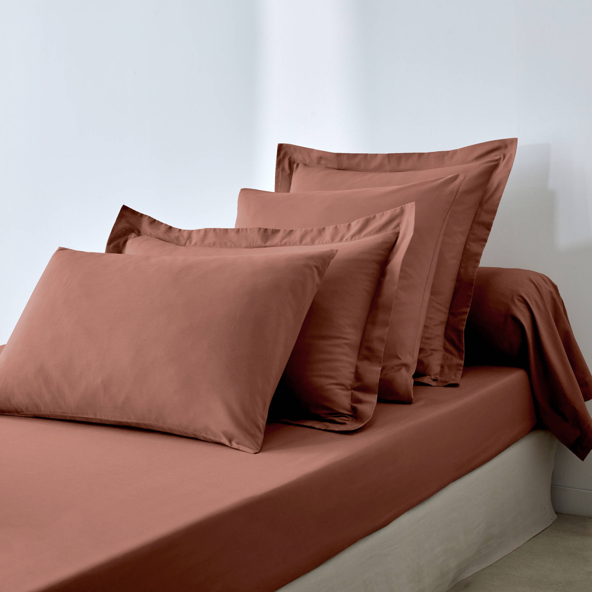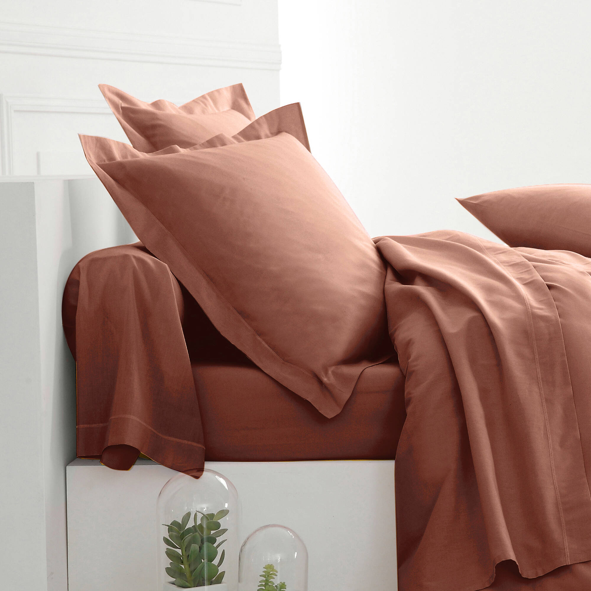 Linge de lit uni coton  (cannelle)