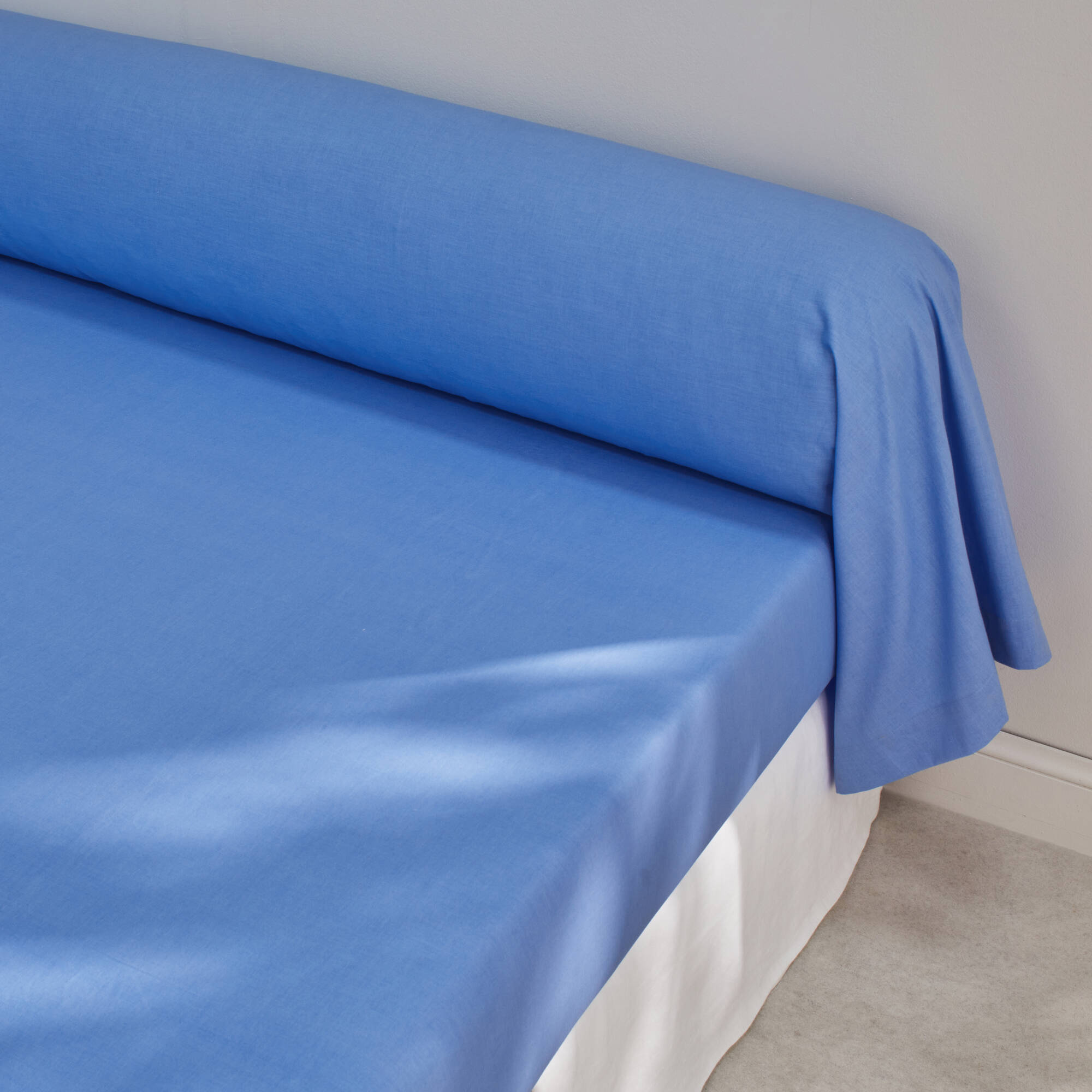 Linge de lit uni coton lavé (bleu)