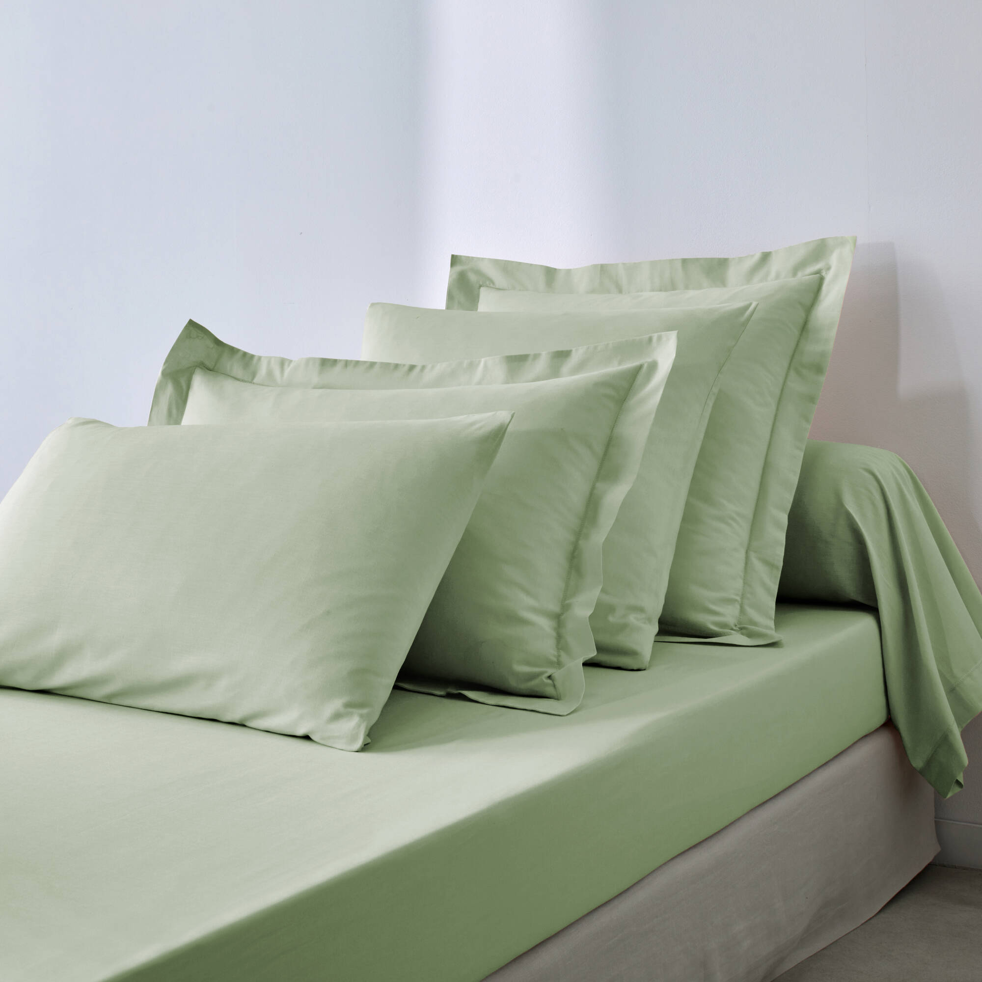 Linge de lit uni coton (vert amande)