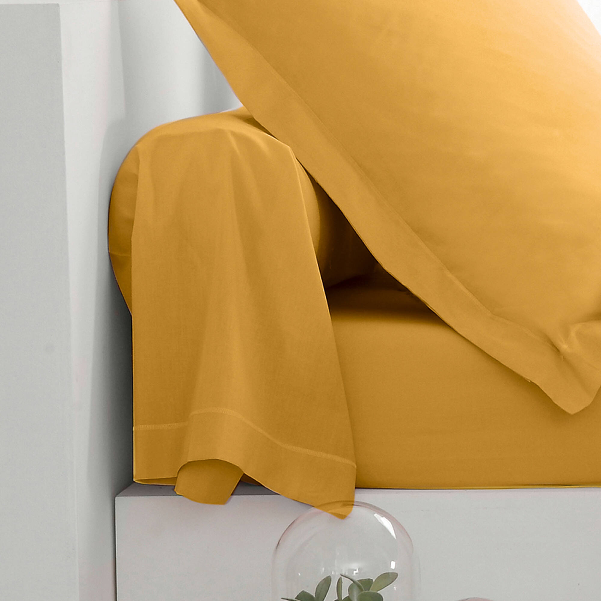 Linge de lit uni coton (curry)