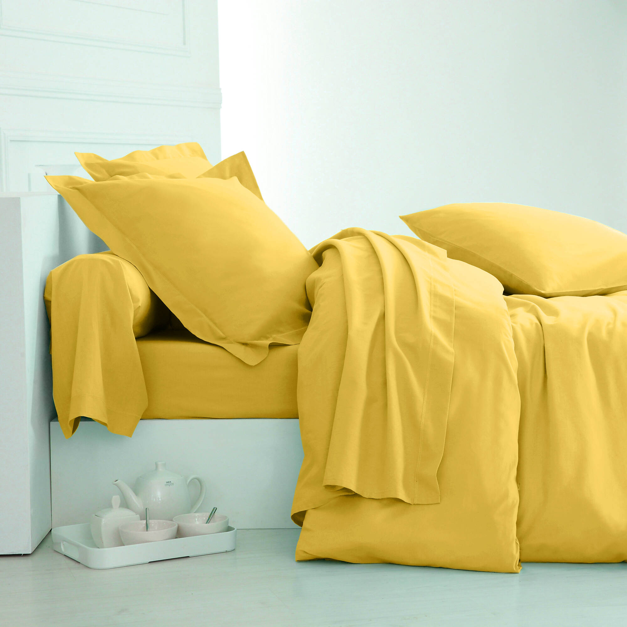 Linge de lit uni coton (citron)