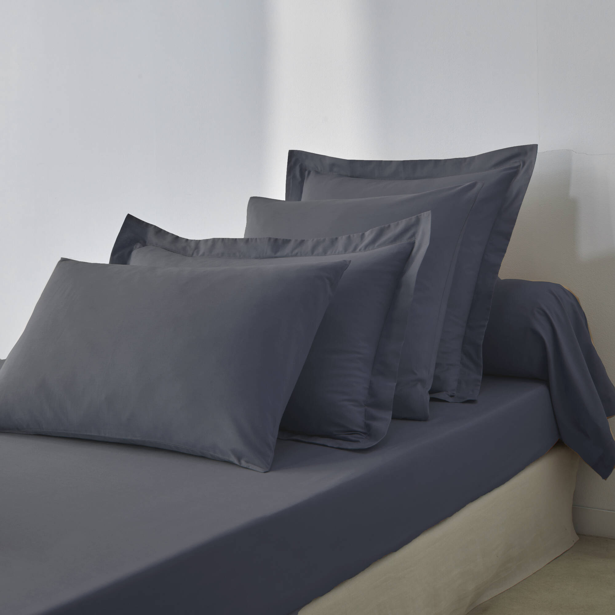 Linge de lit uni coton (bleu encre)