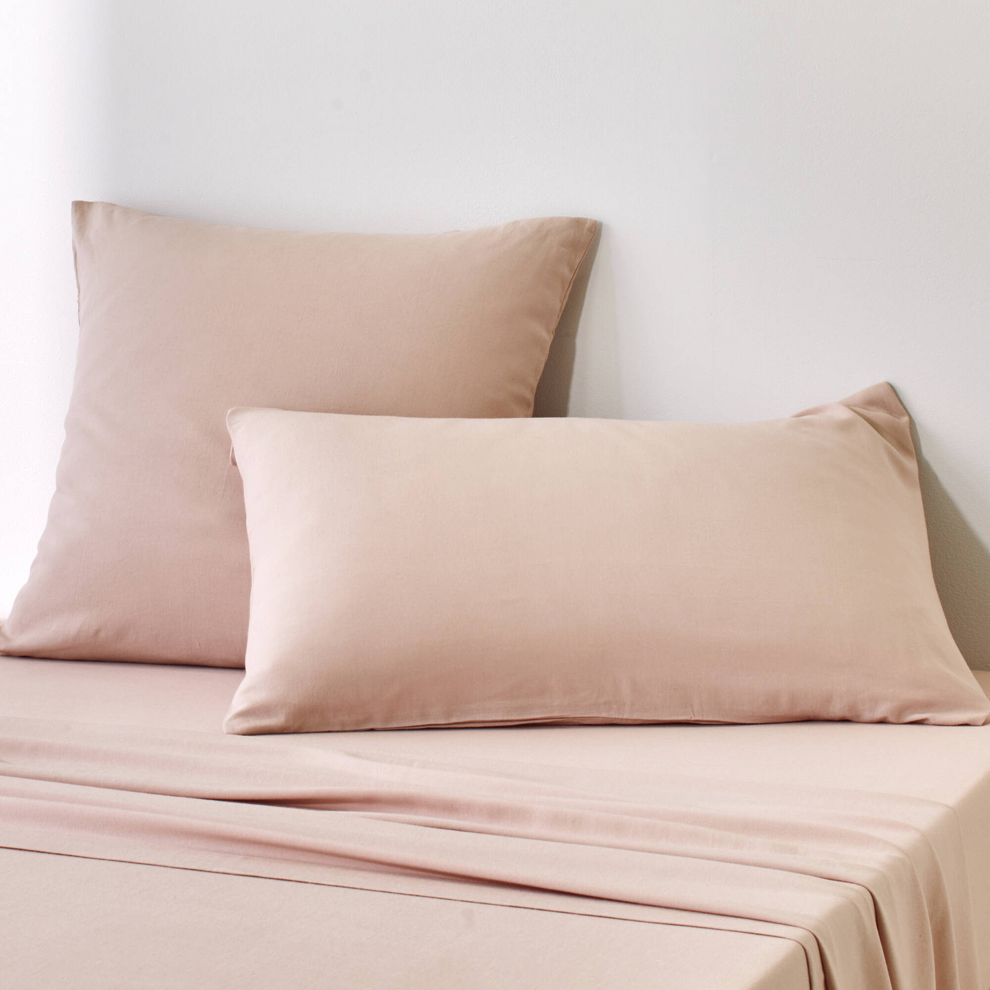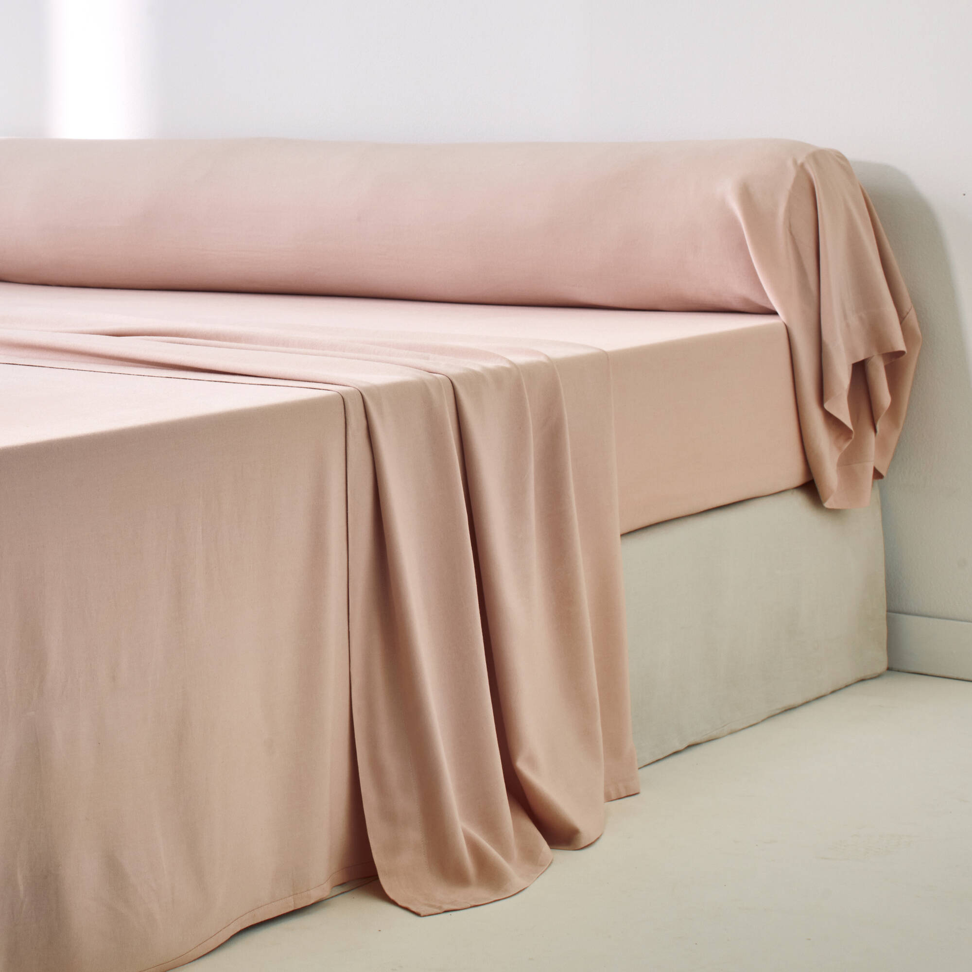Linge de lit uni en bambou et en lin** (rose pâle)