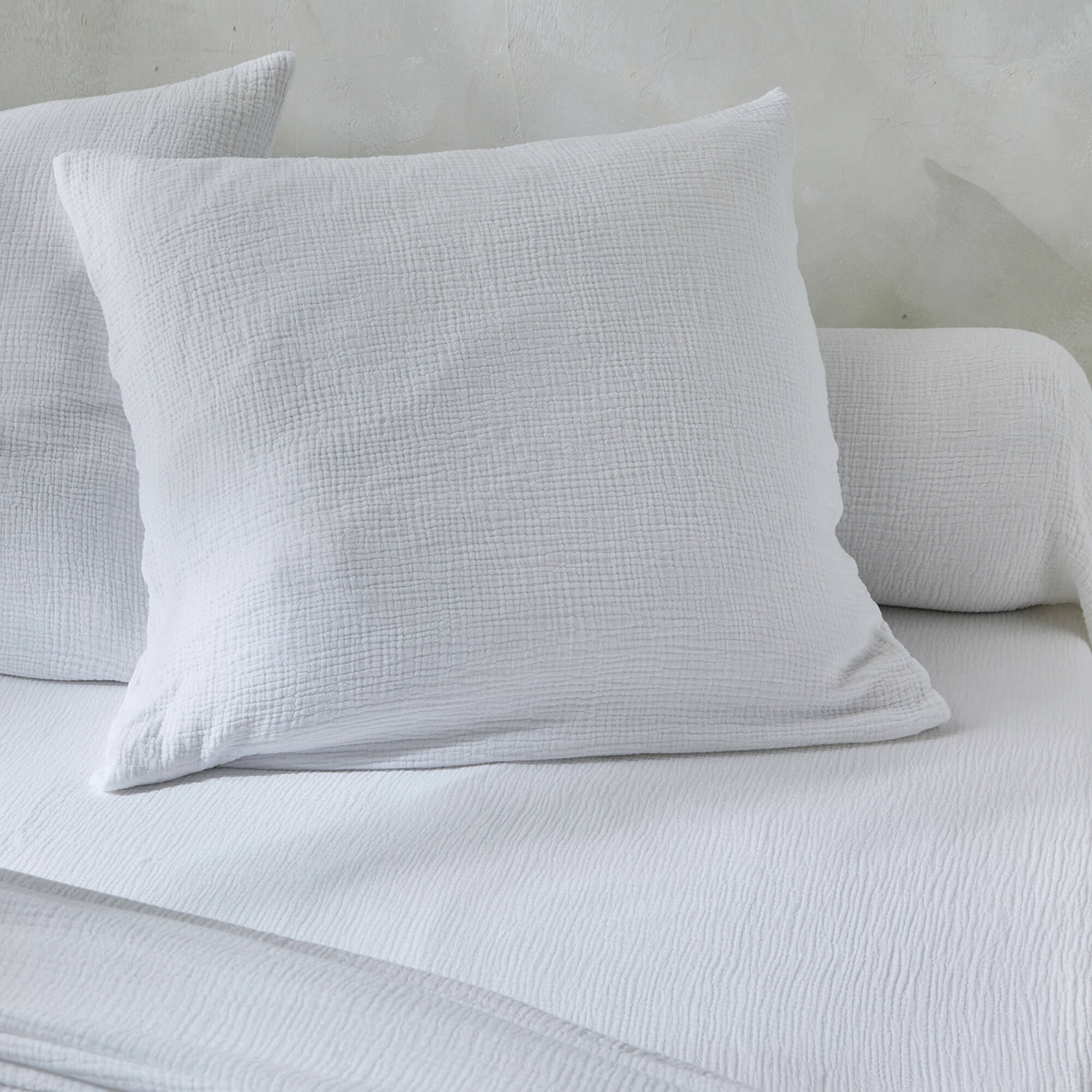 Linge de lit uni en triple gaze de coton (blanc)