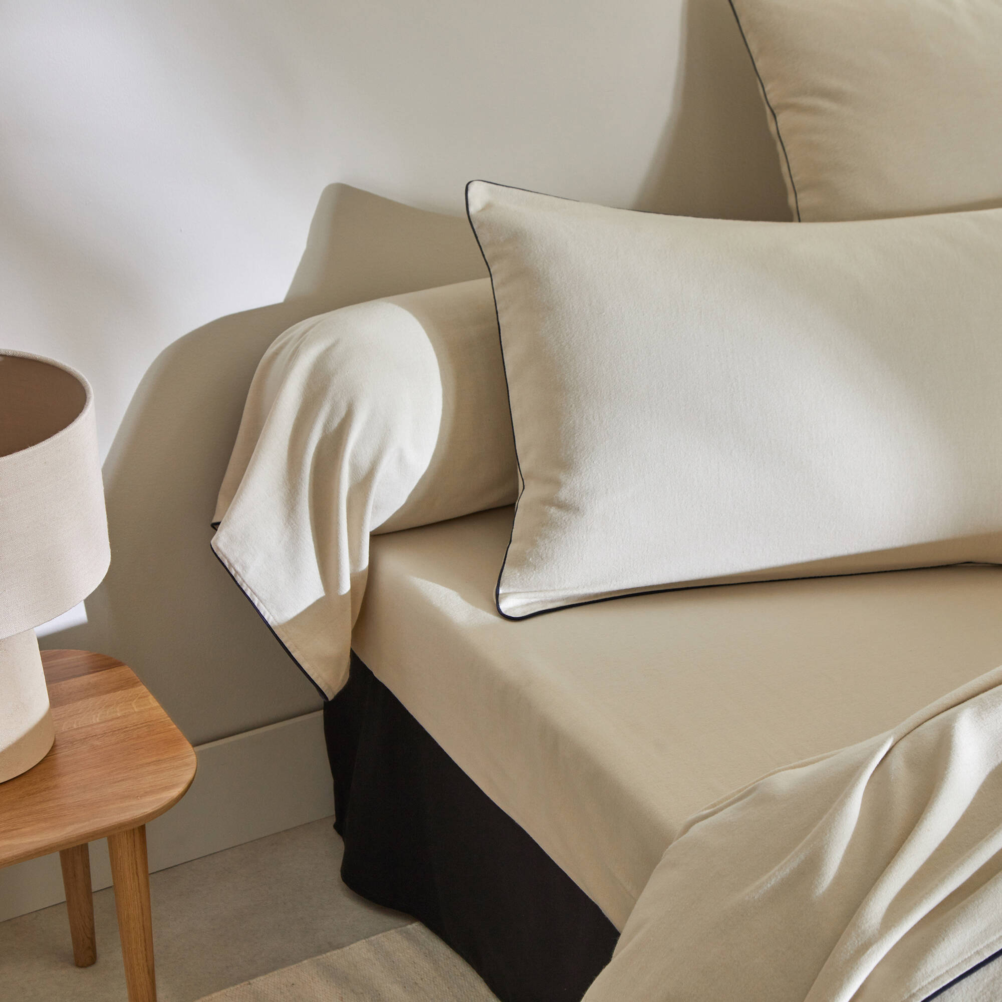 Linge de lit uni flanelle passepoil contrasté, collection "Intemporelle"