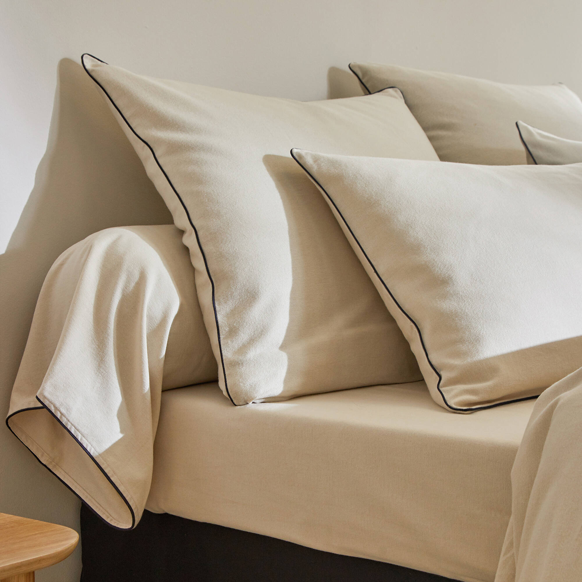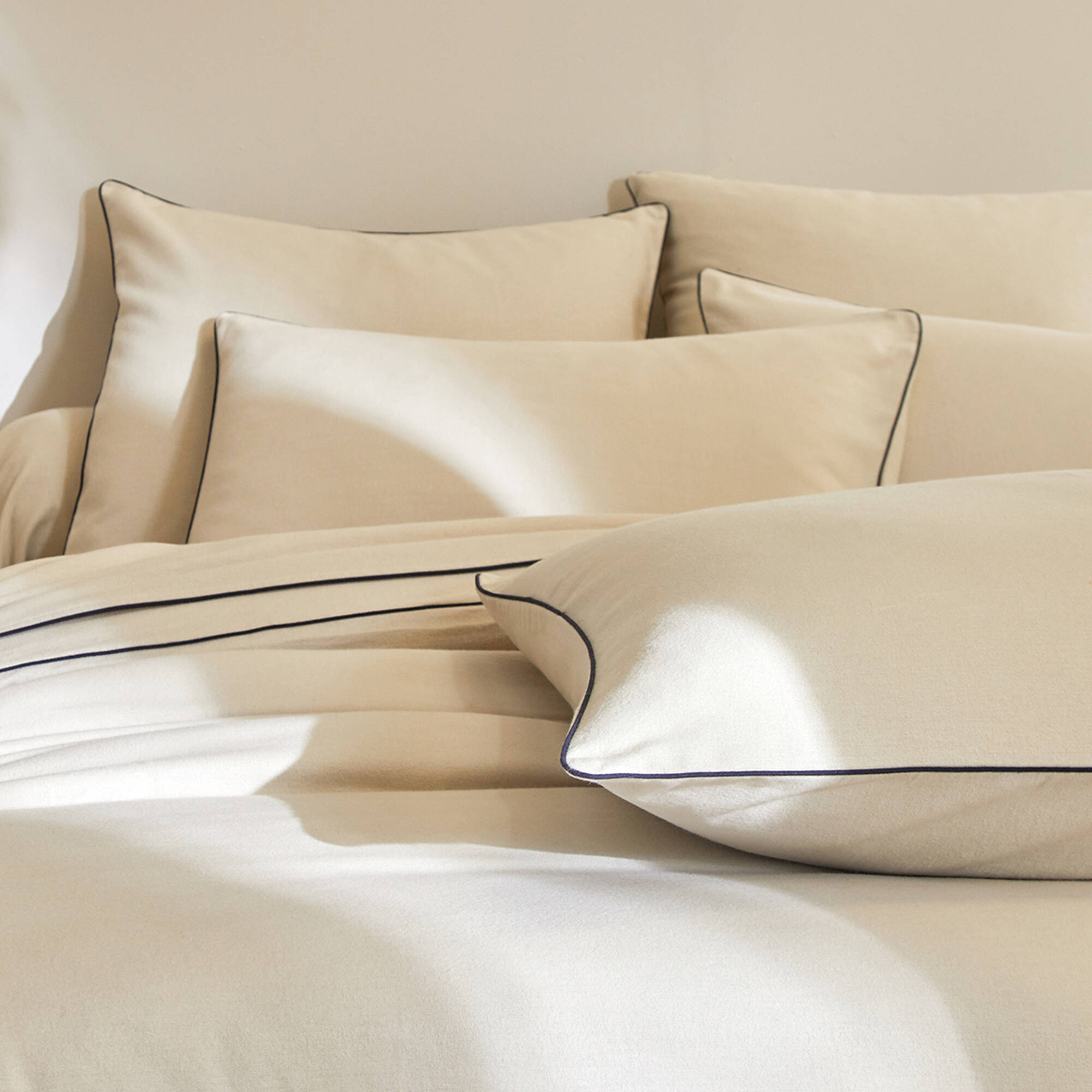 Linge de lit uni flanelle passepoil contrasté, collection "Intemporelle" (beige)