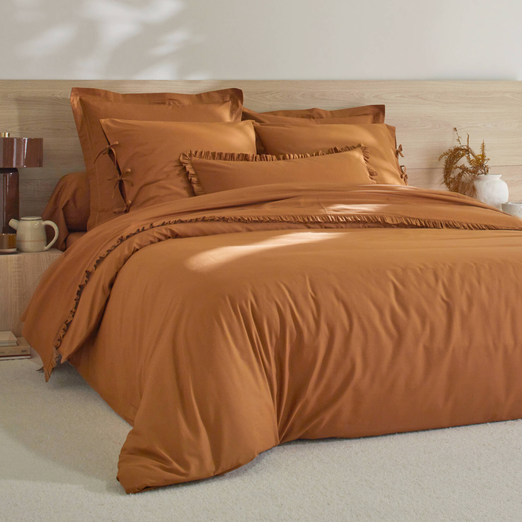 Linge de lit uni percale (châtaigne)