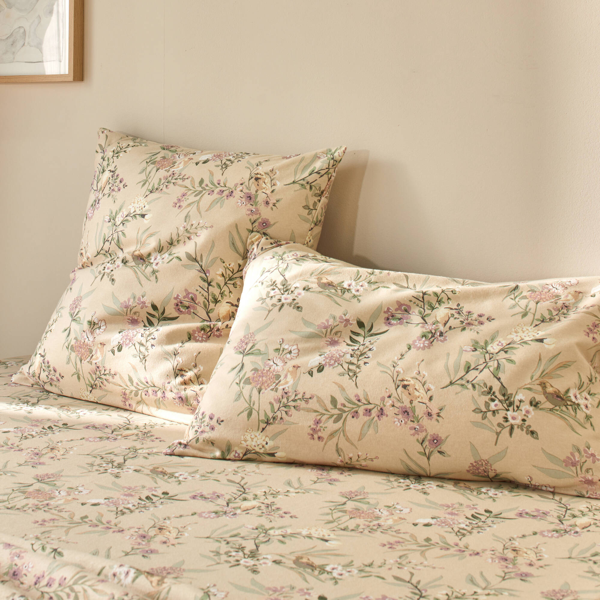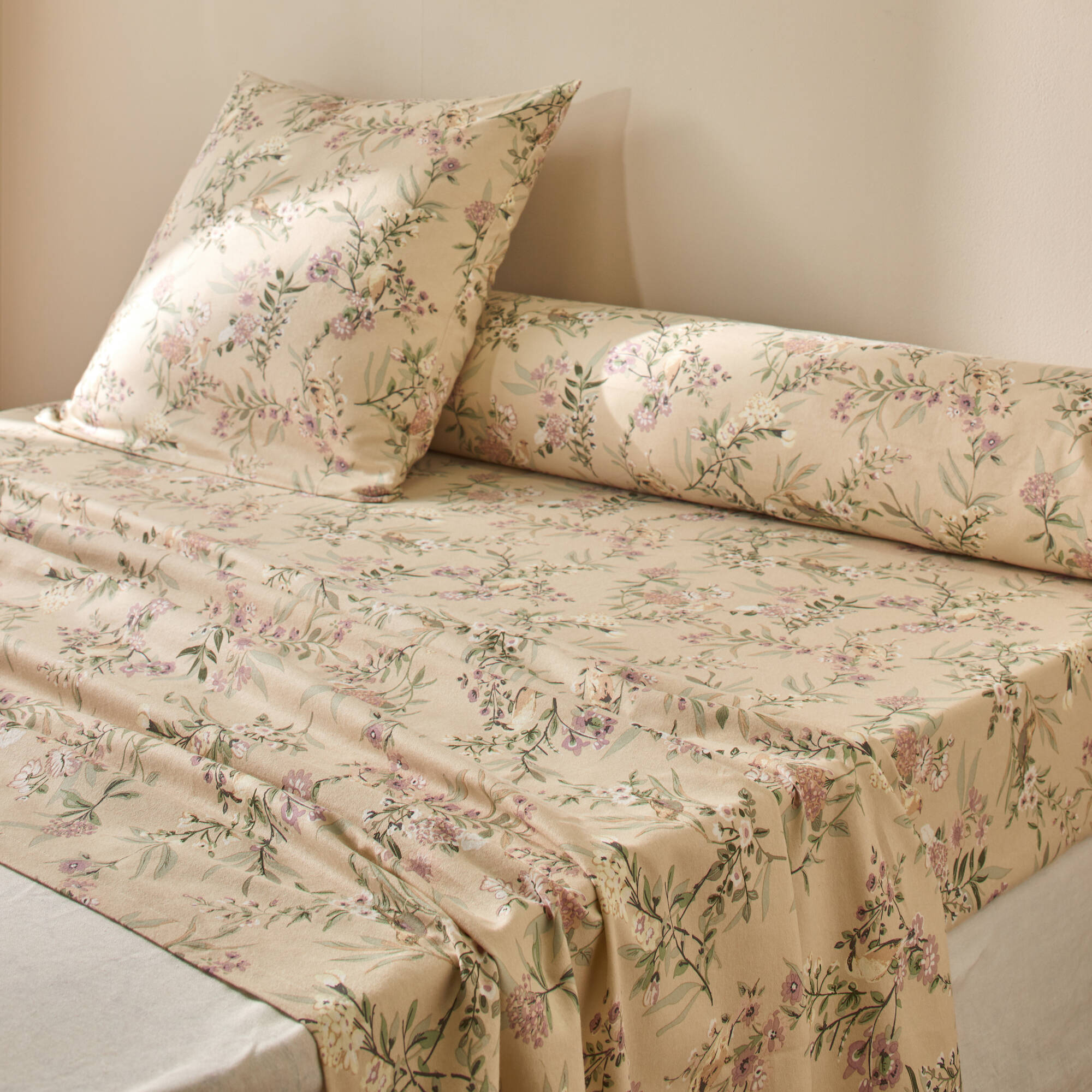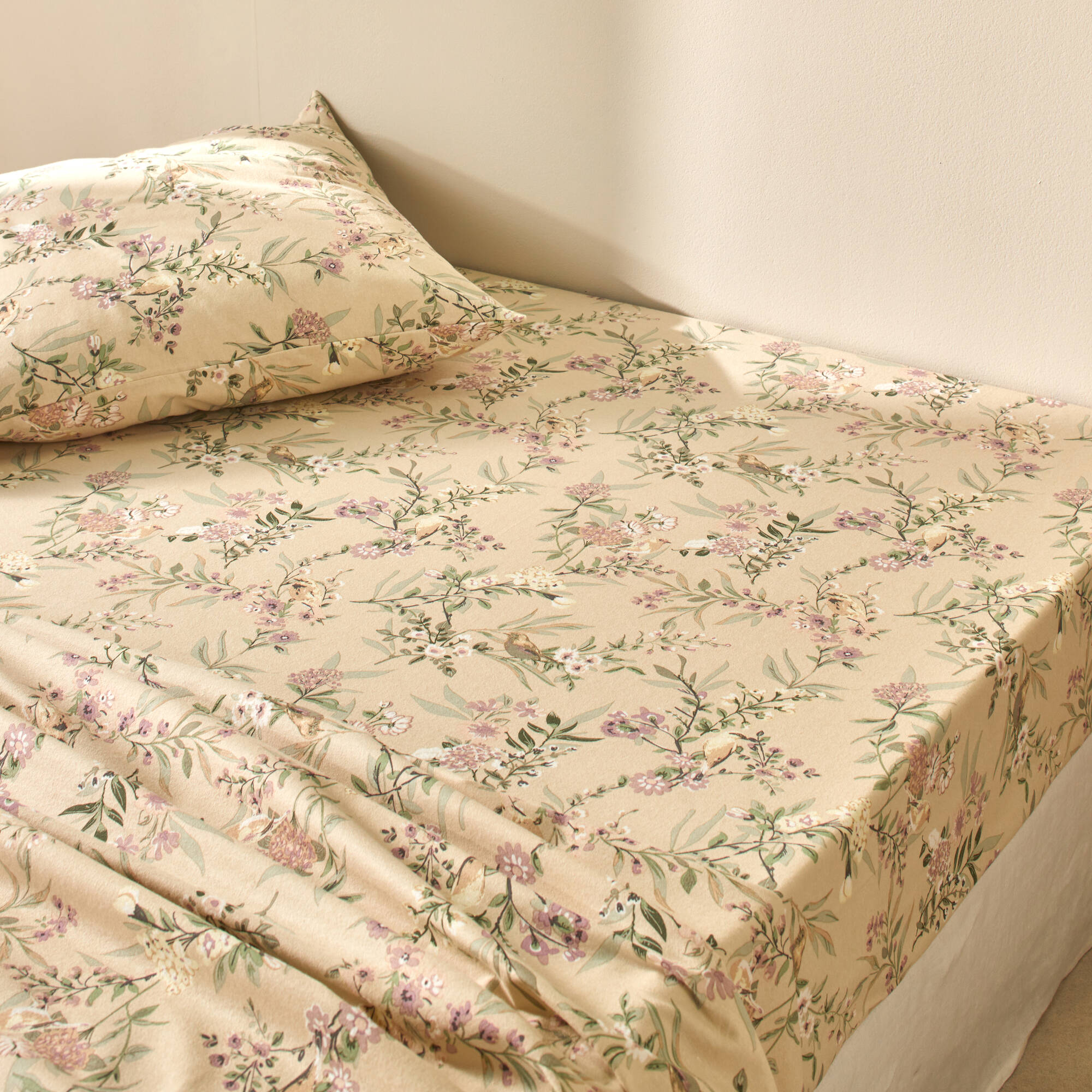 Linge de lit Yseult en flanelle imprimée (sable)